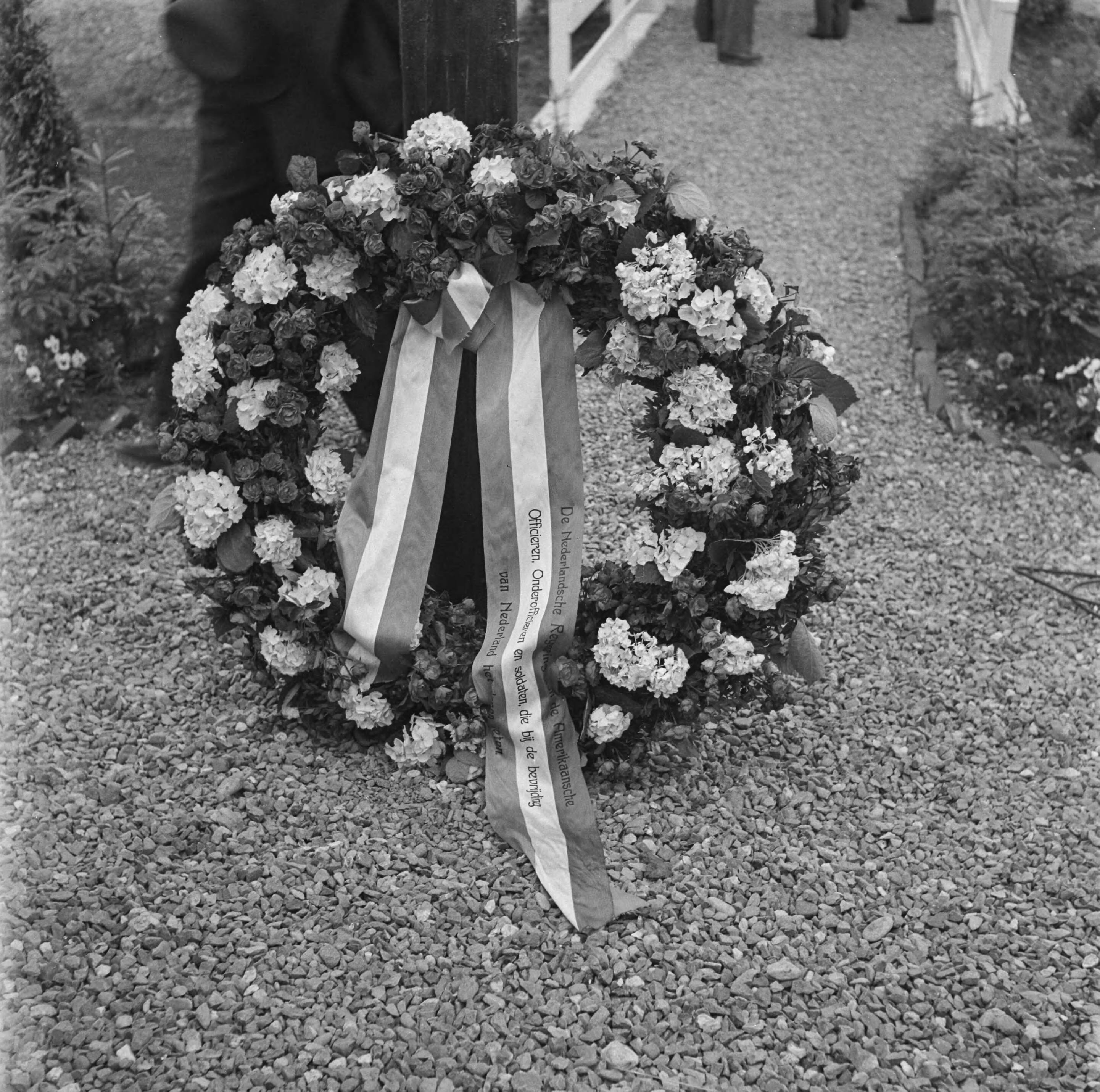 Kranslegging op het soldatenkerkhof Margraten (L.) door minister president Schermerhorn. Een krans