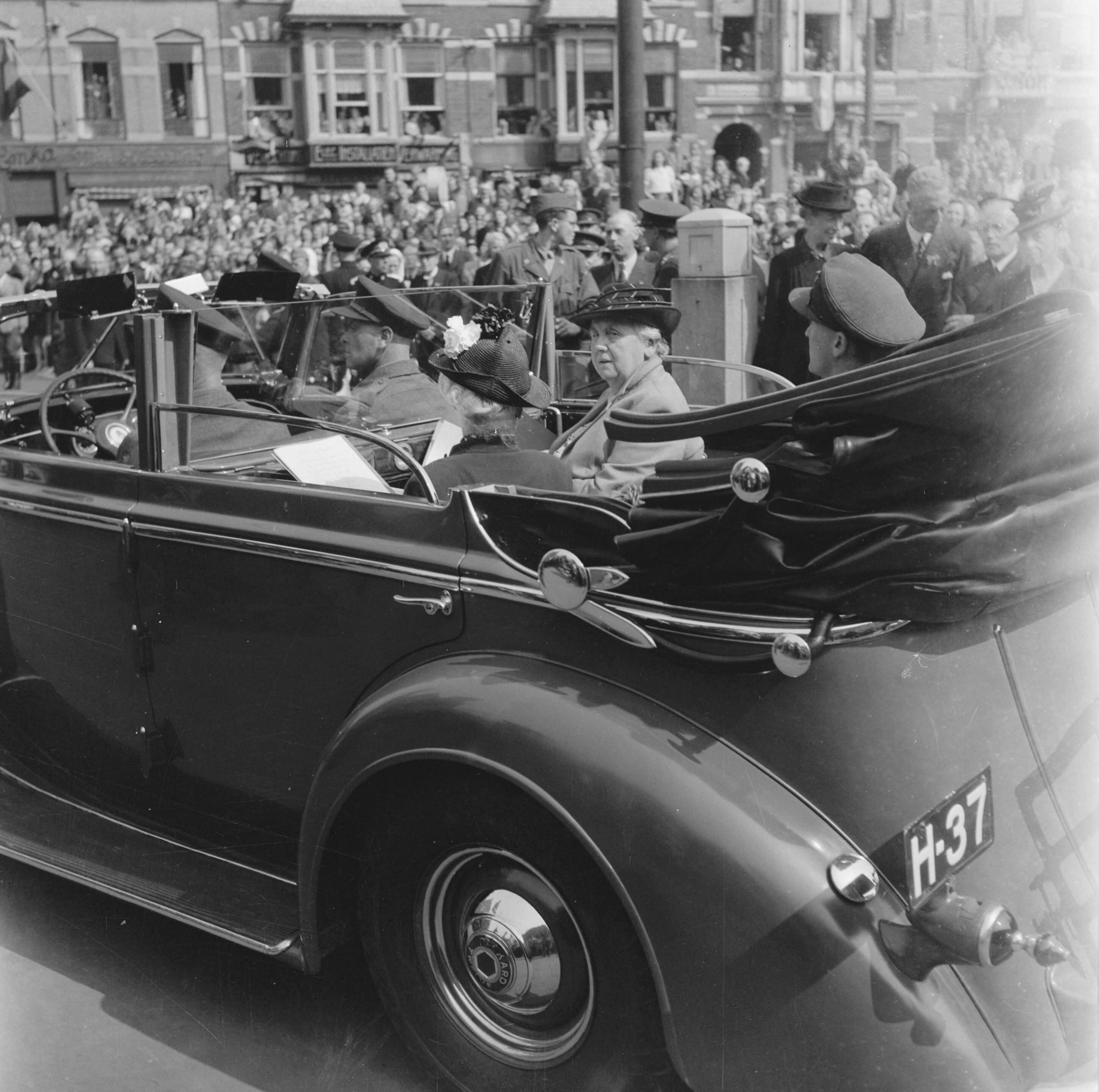 Koningin Wilhelmina tijdens rijtoer