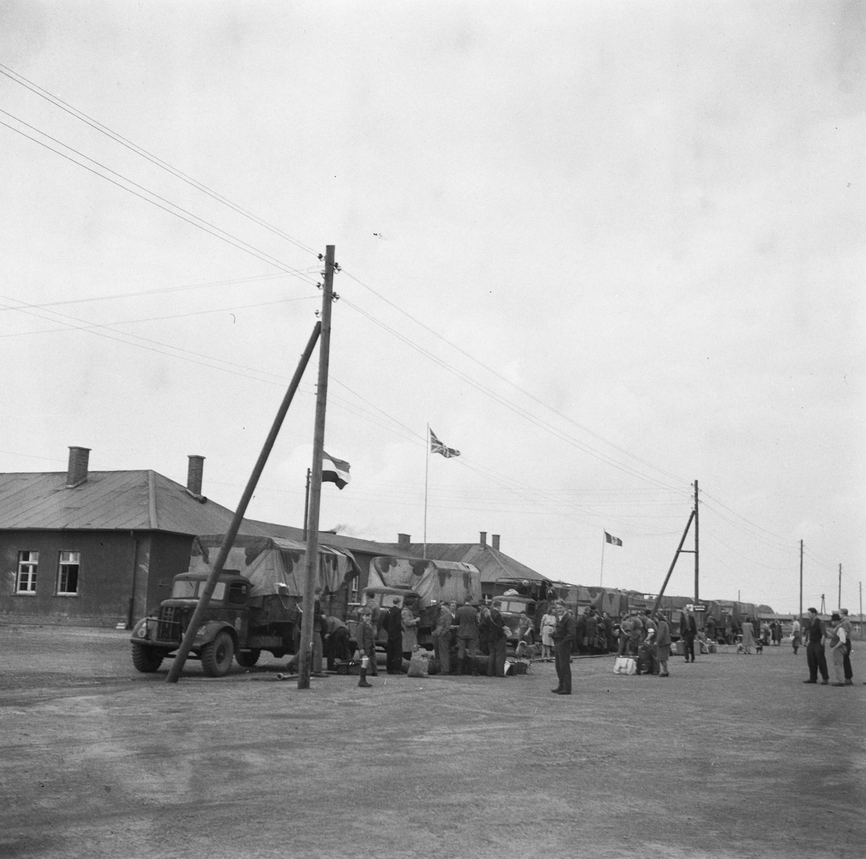Kolonne vrachtwagens staat gereed