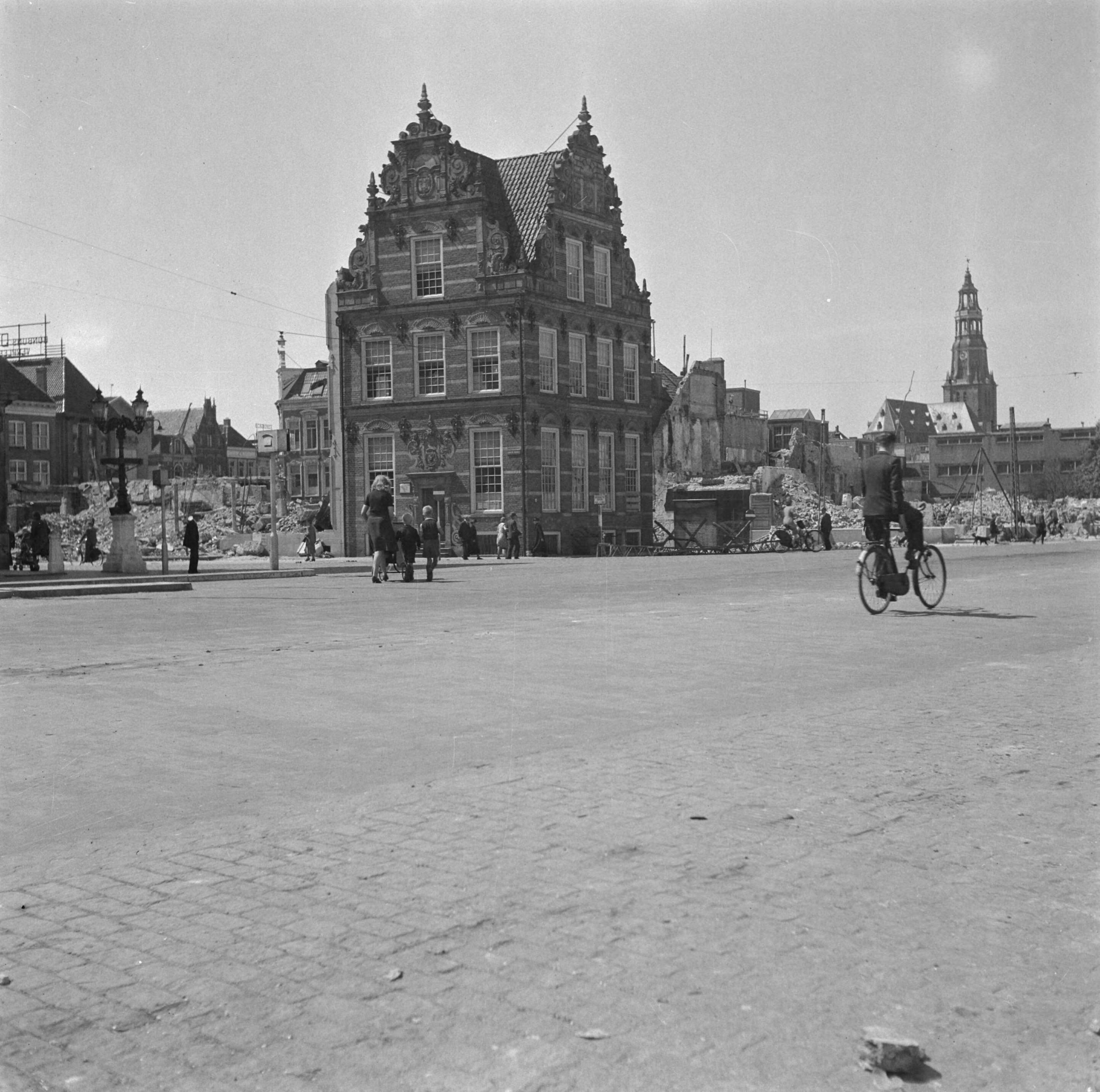 Westzijde van de Grote Markt met het Goudkantoor en de A-kerk
