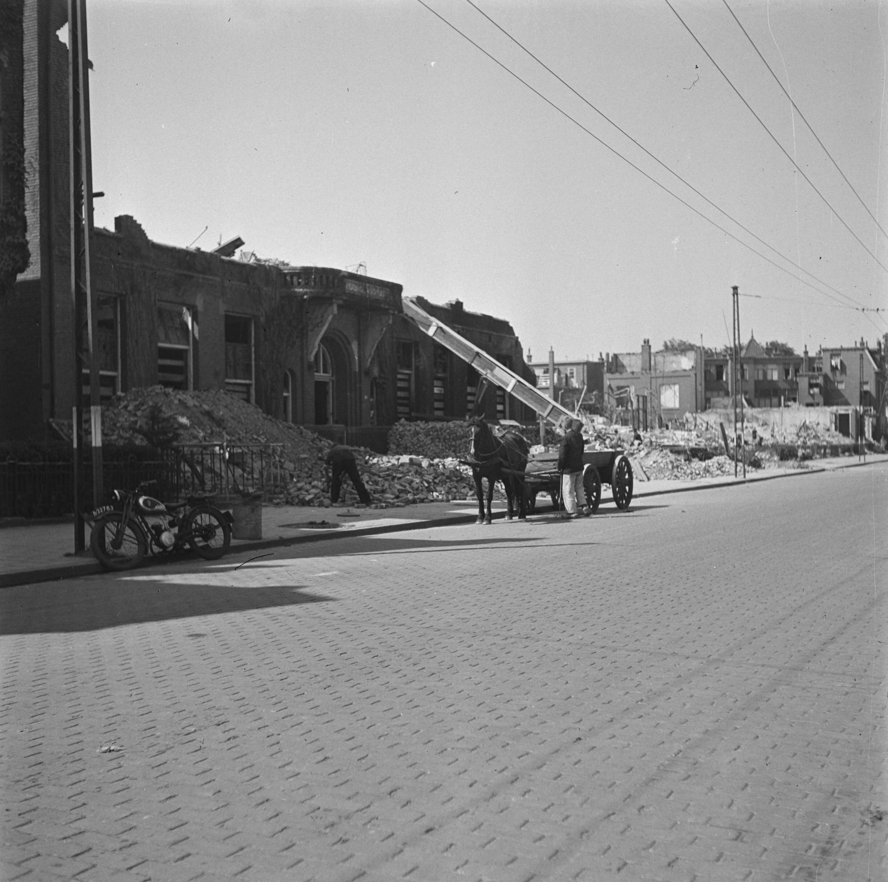 Puin wordt afgevoerd met paard en wagen