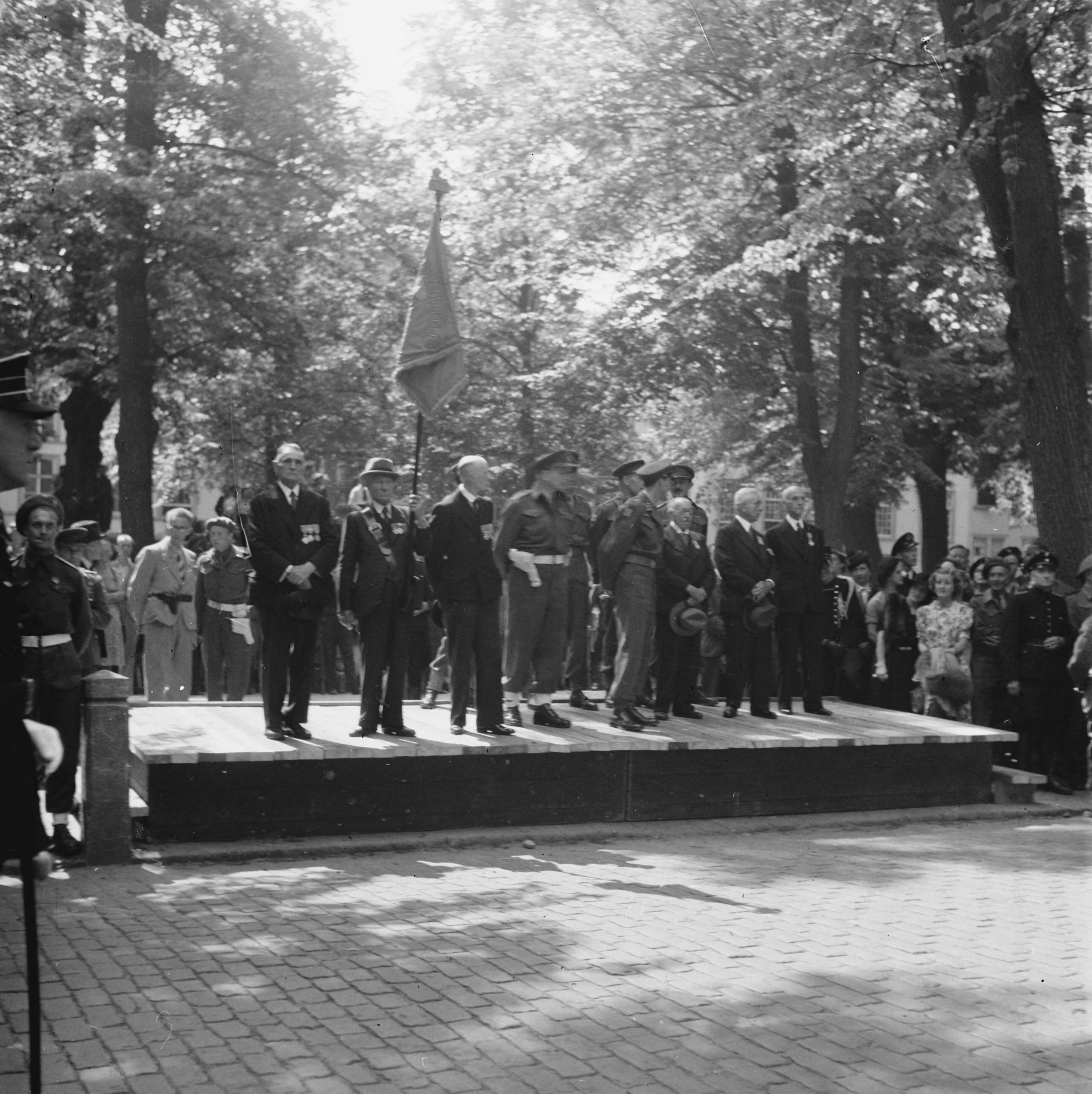 Parade over het Lange Voorhout. Bordes met hoogwaardigheidsbekleders en vaadelwacht