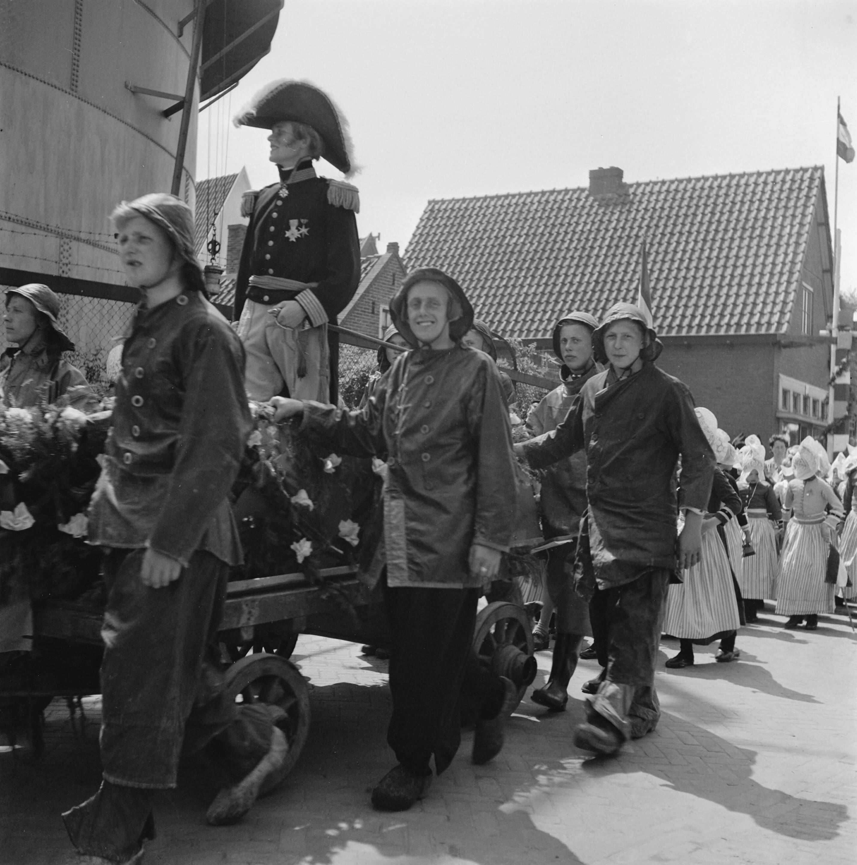 Feesten en kermis te Volendam. De mannen van de reddingsbrigade in de stoet