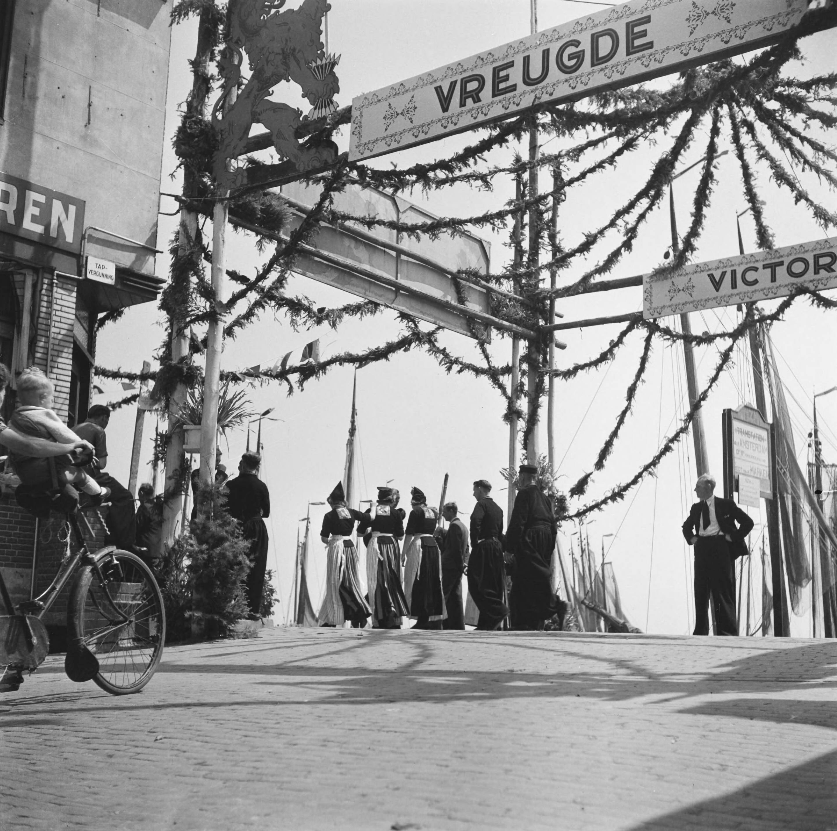 Feesten en kermis te Volendam. Monumentale versiering in de haven