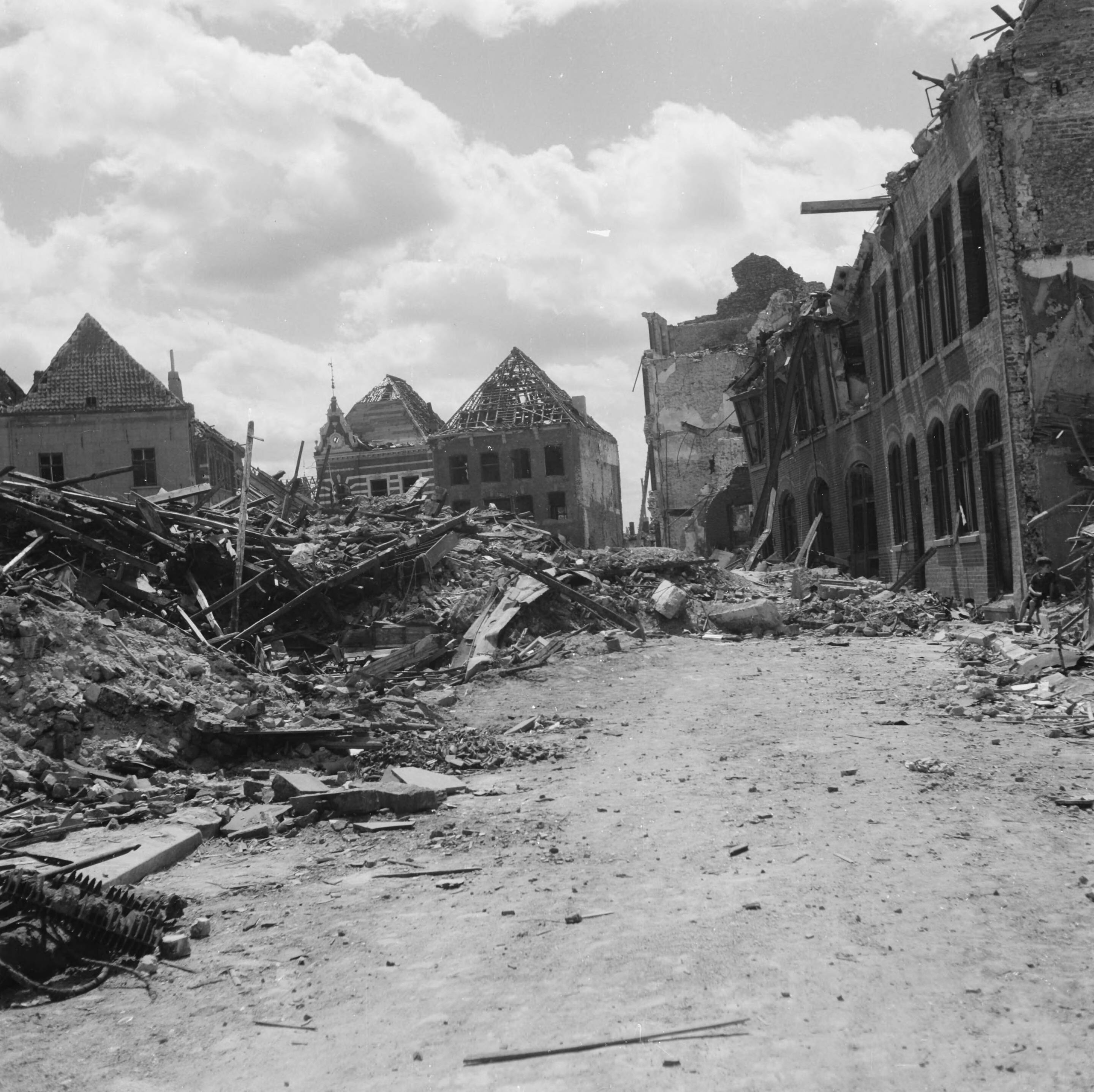 Vernielingen Venlo. Oude Markt te Venlo voor start ruimingswerkzaamheden