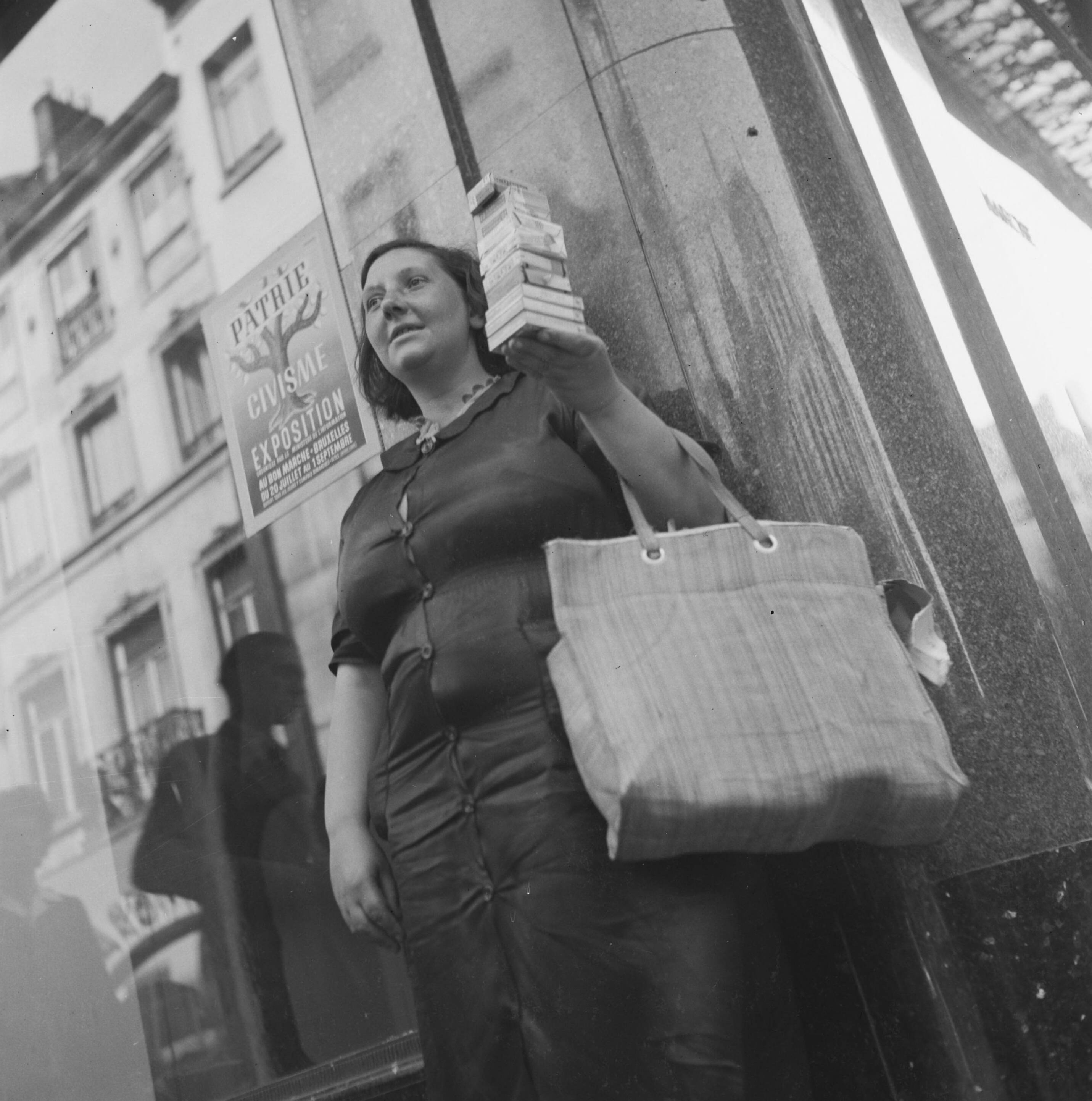Straatscene in Parijs. Sigarettenverkoop op straat