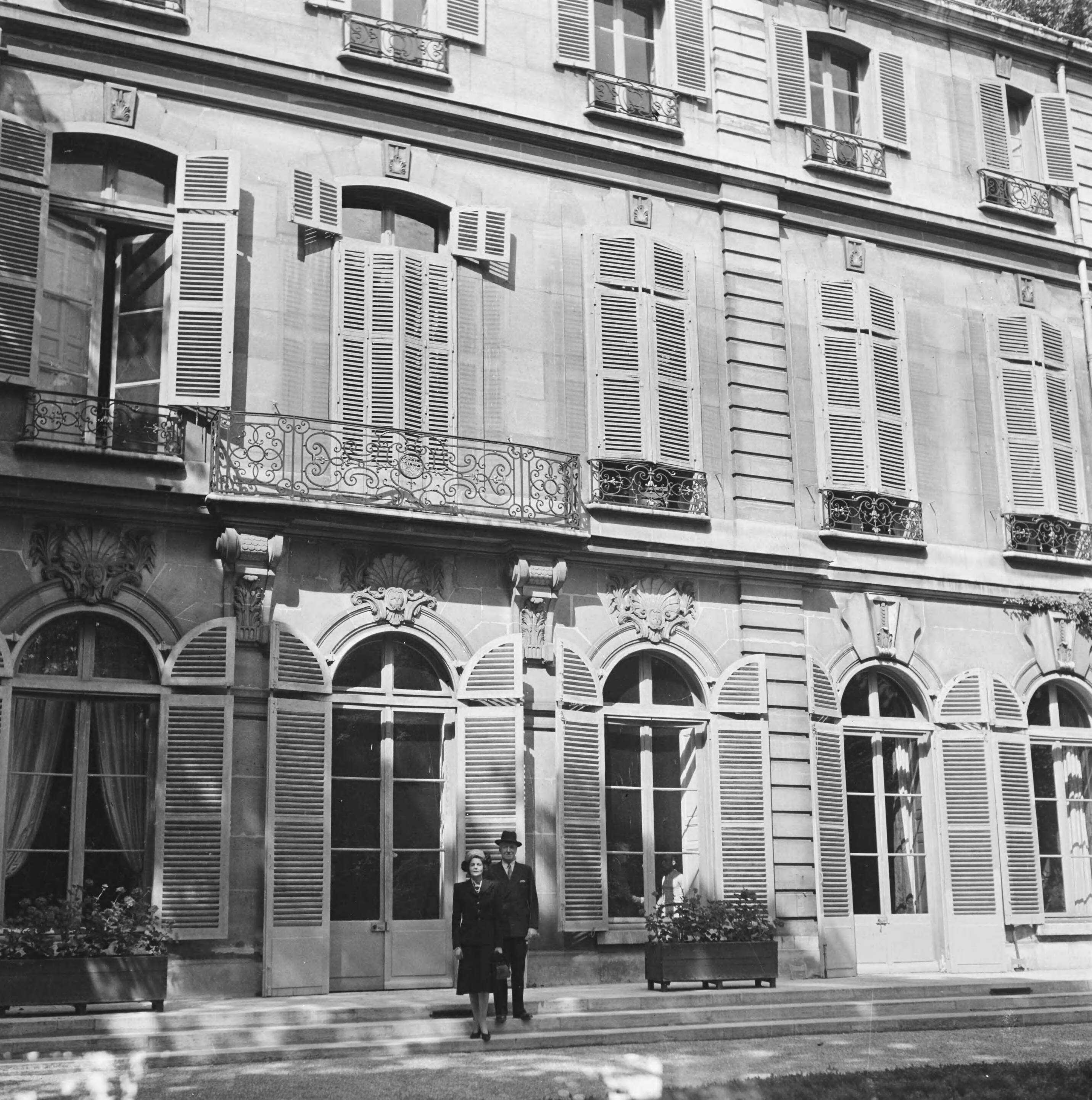 Ambassadeur H.M. Haersma de With en zijn echtgenote voor de ambassade