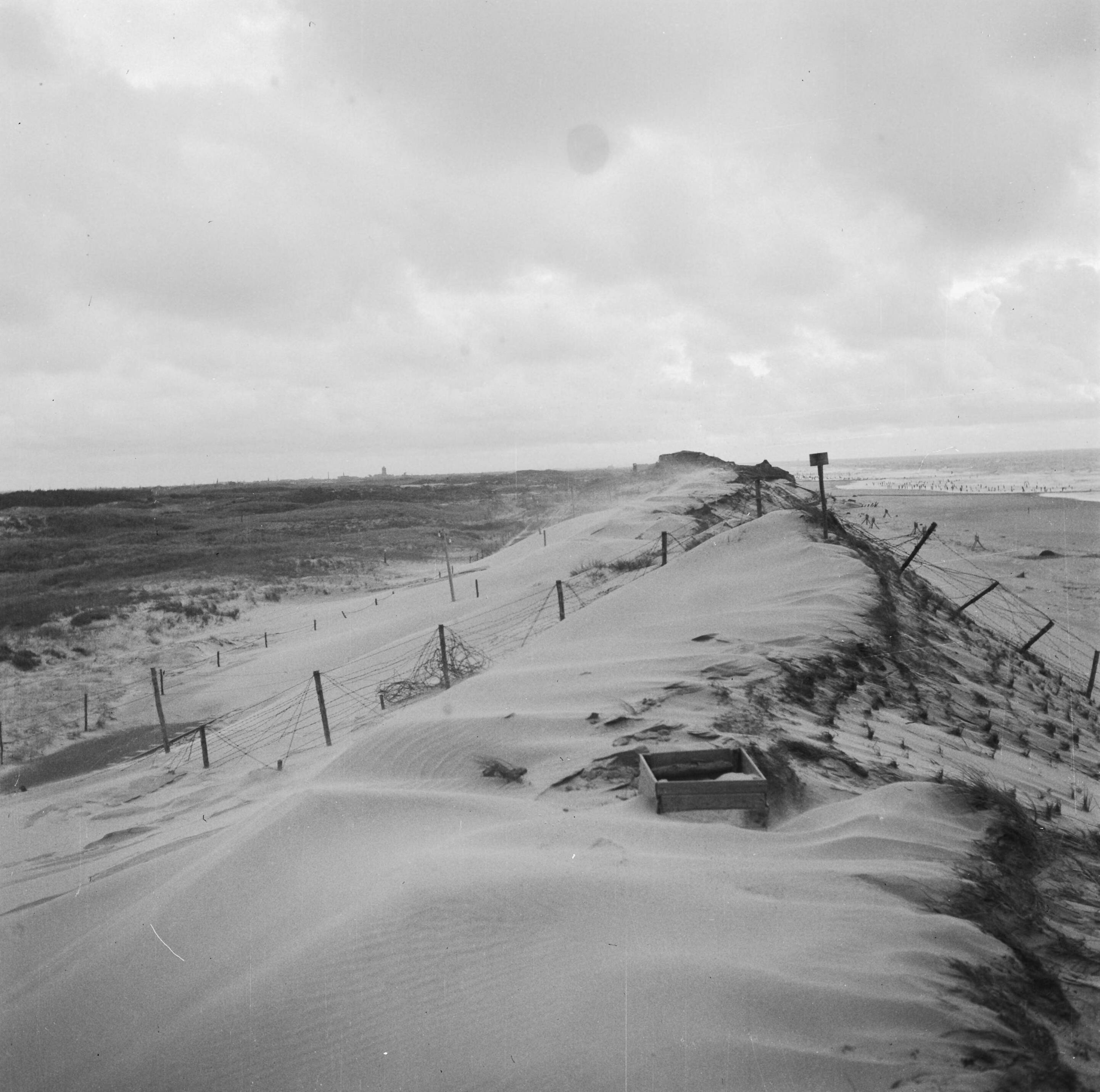 Duin met prikkeldraadversperring