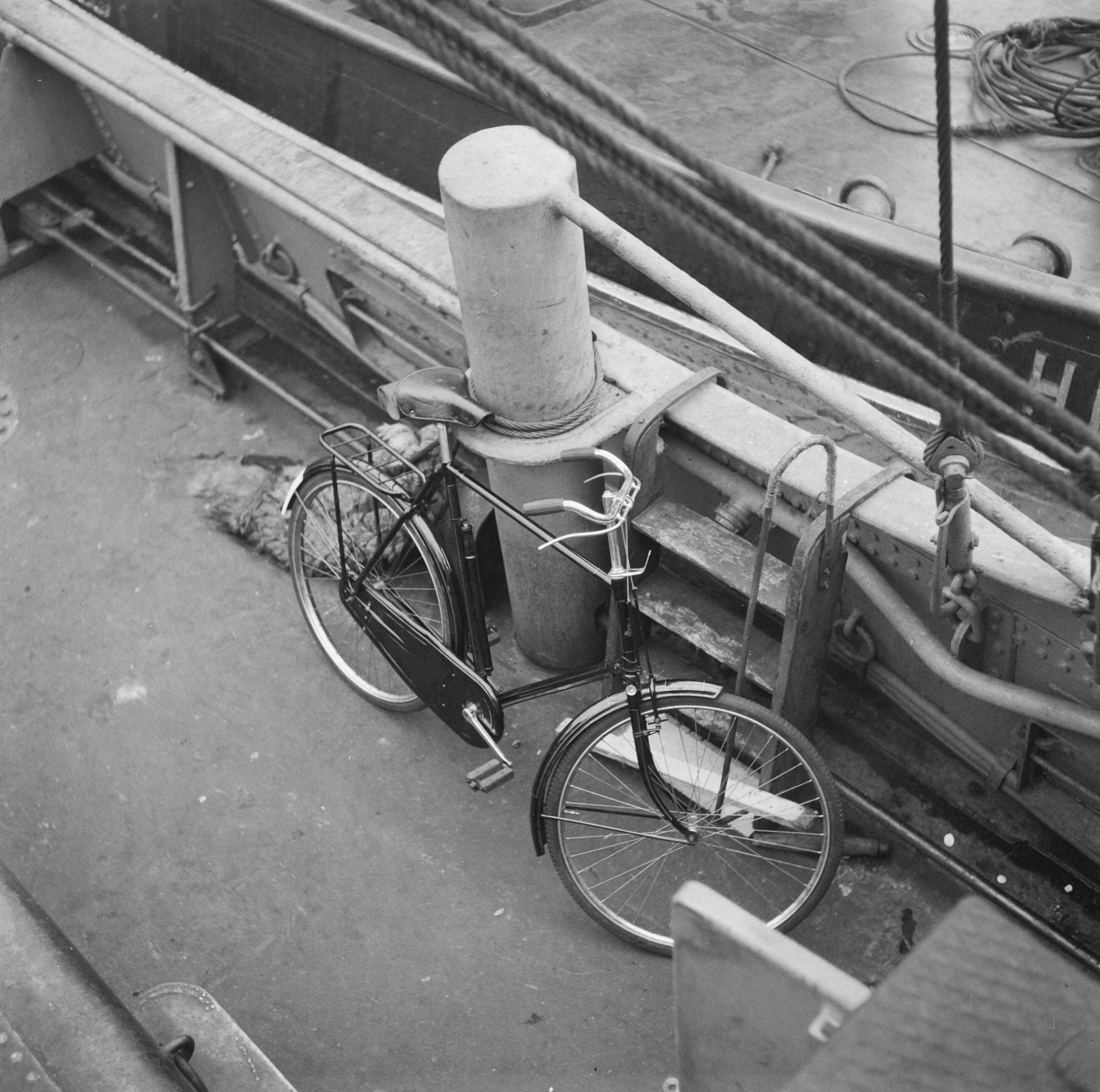 Thuiskomst van de sleepboot "Amsterdam" Fiets aan de kade