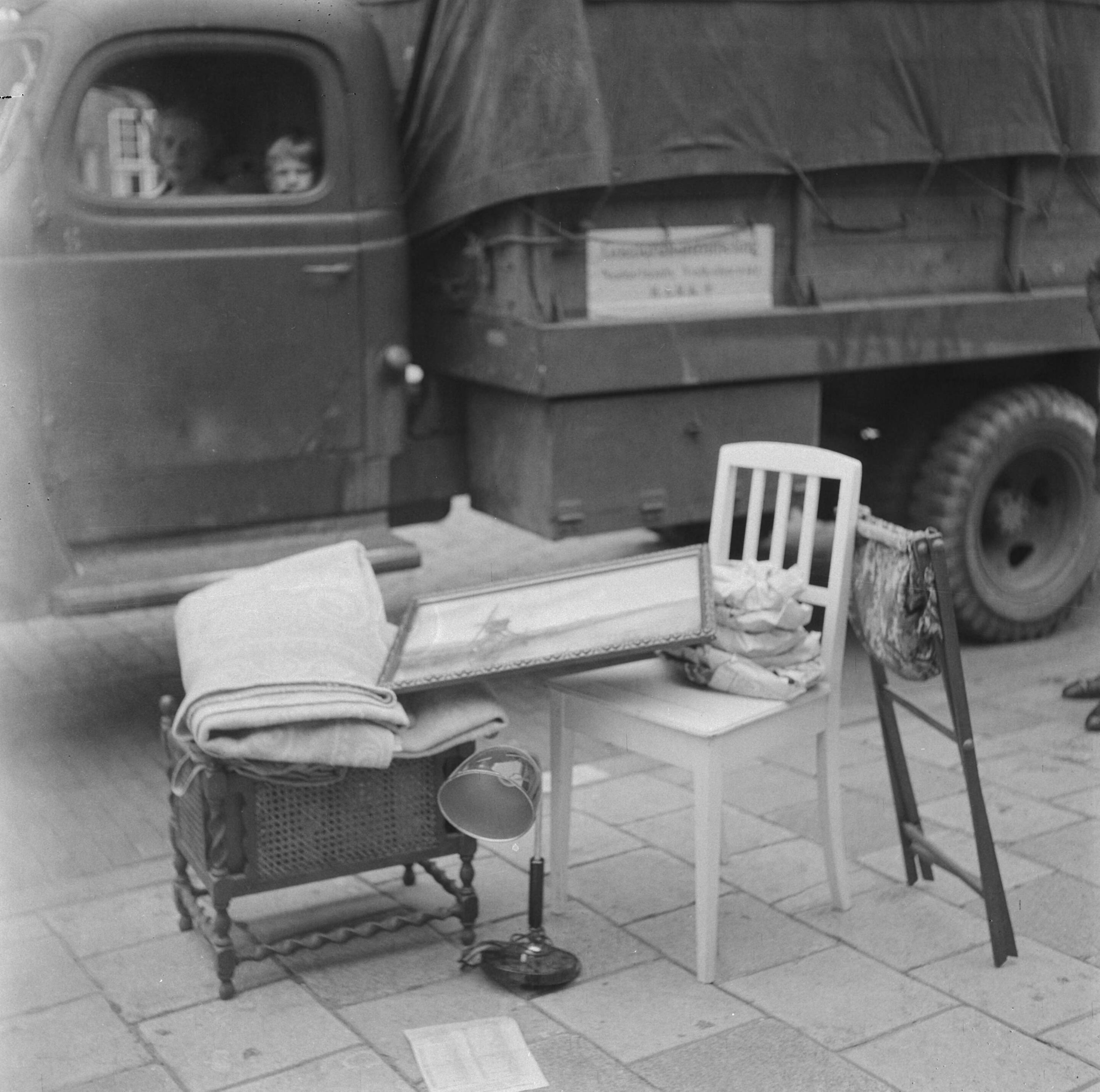 'Amsterdam helpt Arnhem' . HARK, Hulpactie Rode Kruis in Amsterdam. Mensen geven spullen die ze kunnen missen