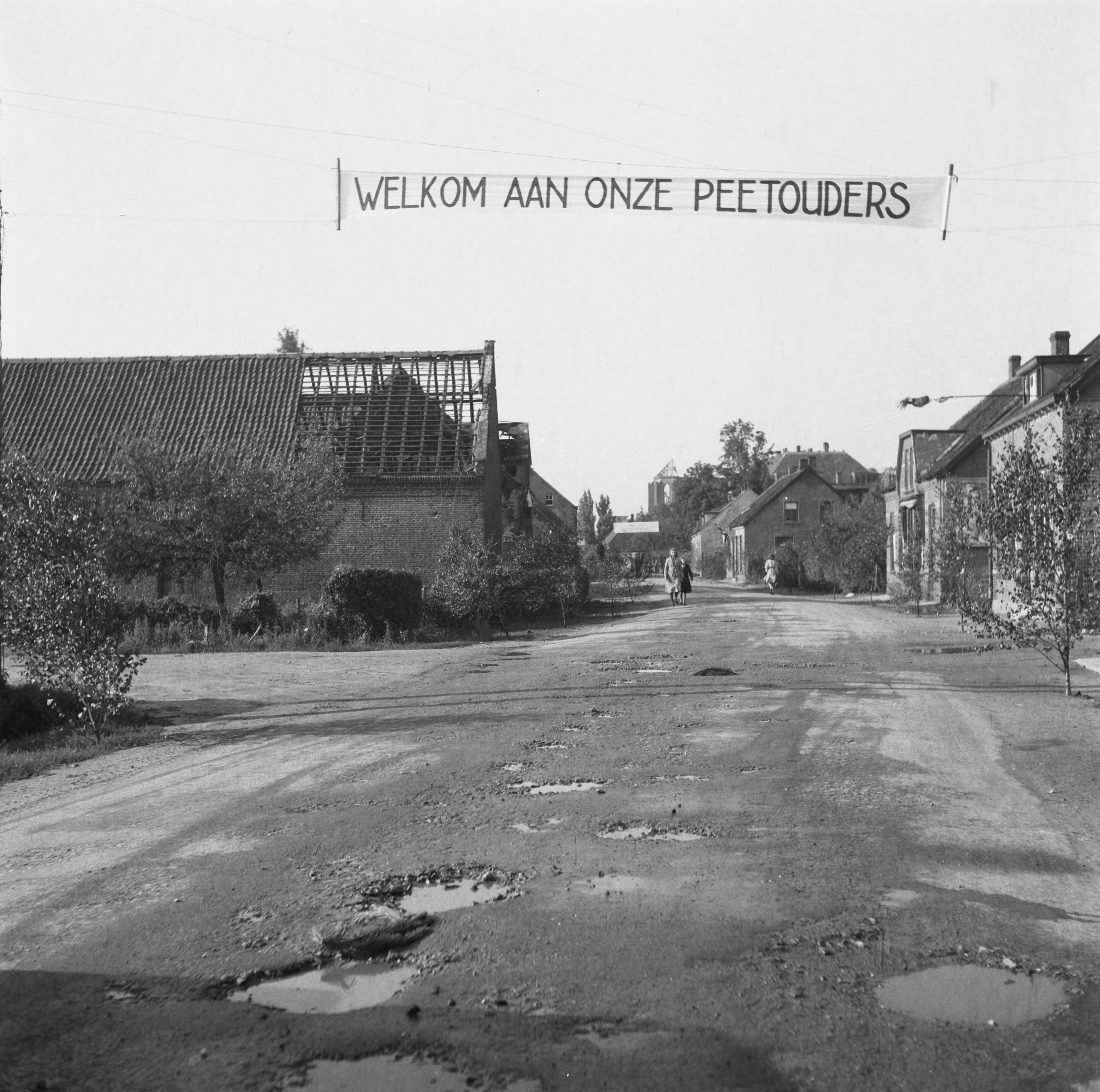 Hulpactie voor Venray. Spandoek ´Welkom aan onze peetouders´