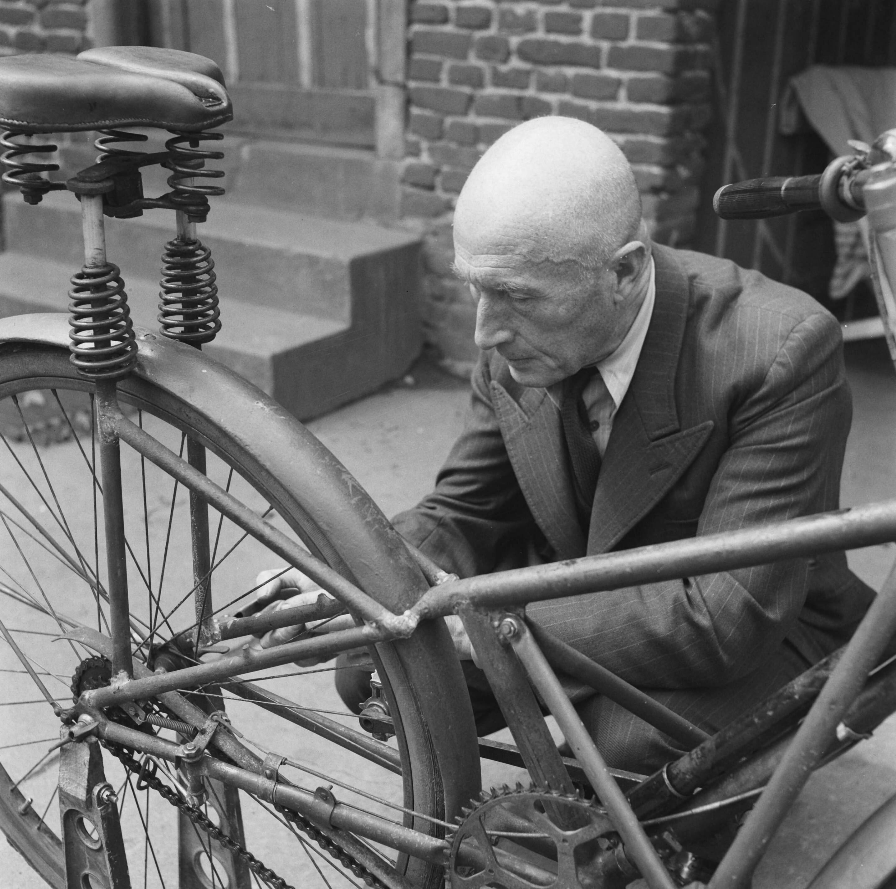 Uitvinder die een opbouwbare fiets bouwde