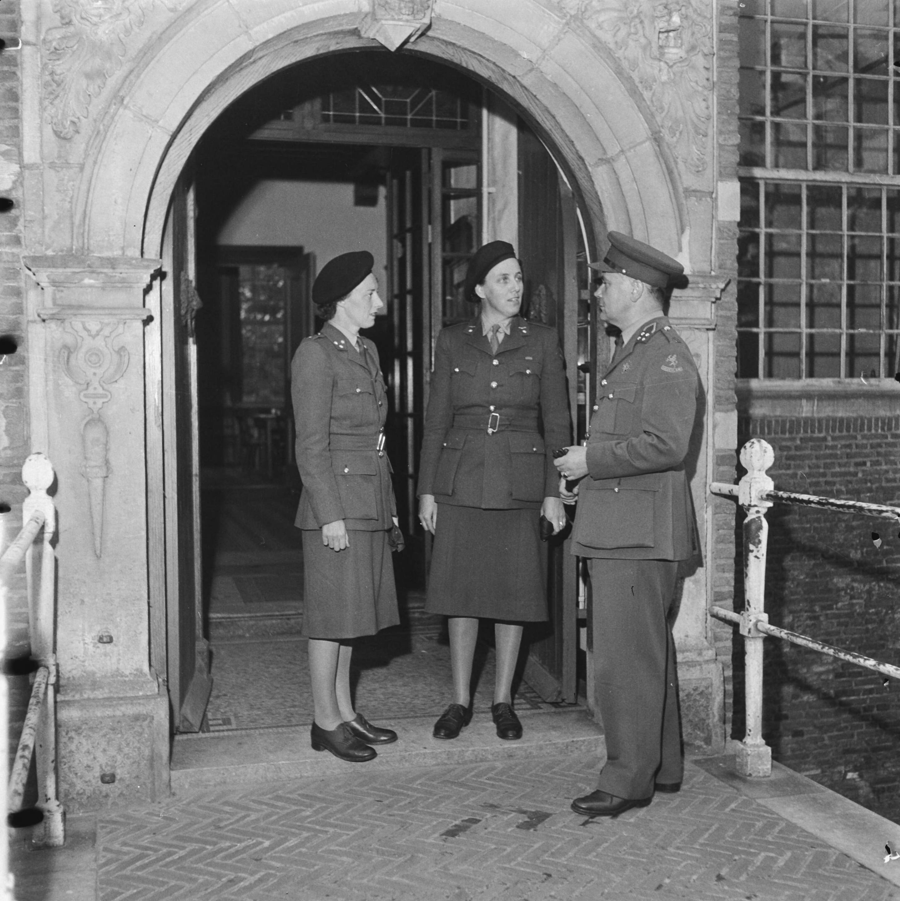 Generaal Kruls op bezoek. In gesprek met commandant majoor C.E. Smit-Dyserinck en een kapitein