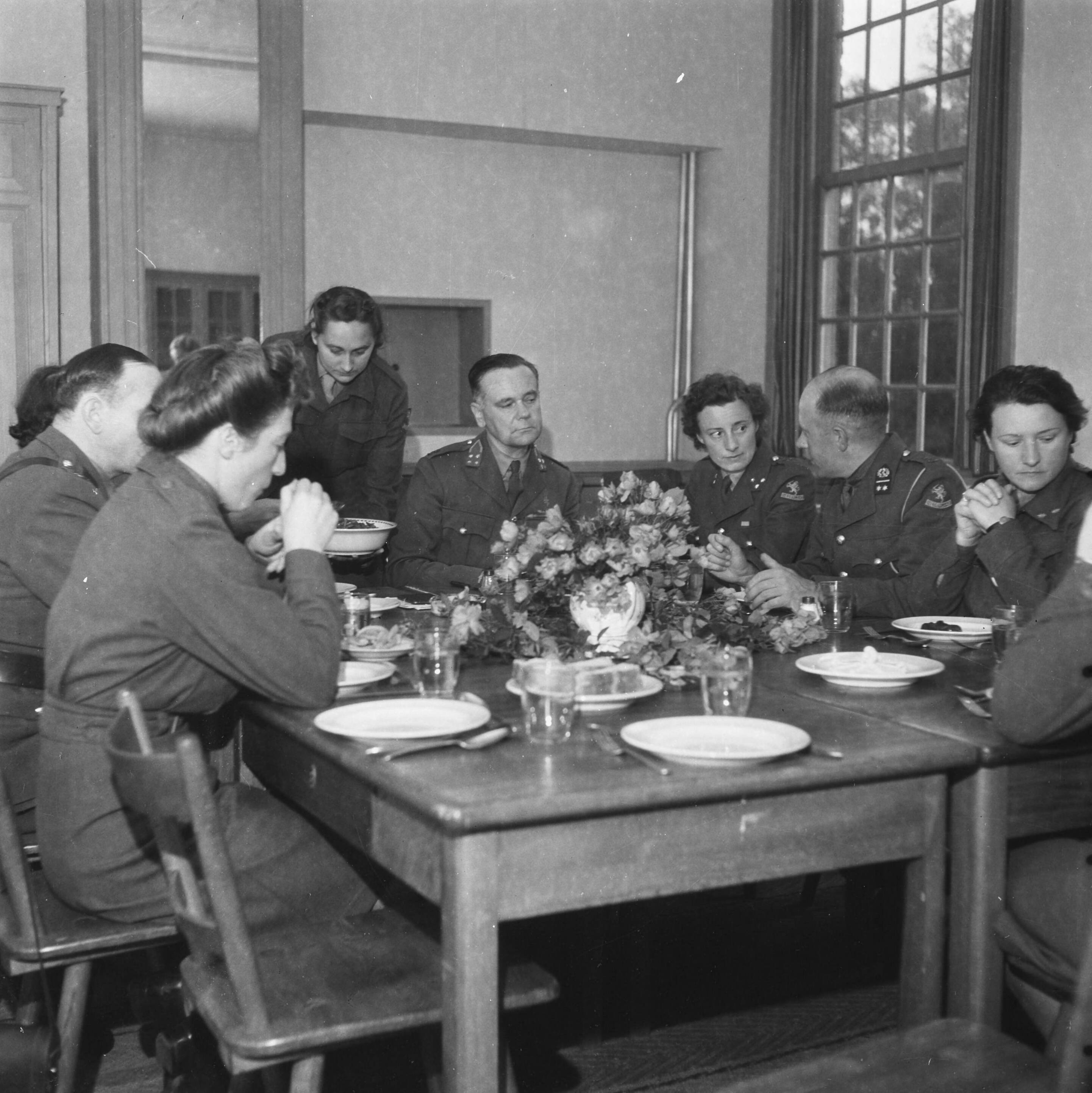 Generaal Kruls op bezoek. Tijdens de lunch
