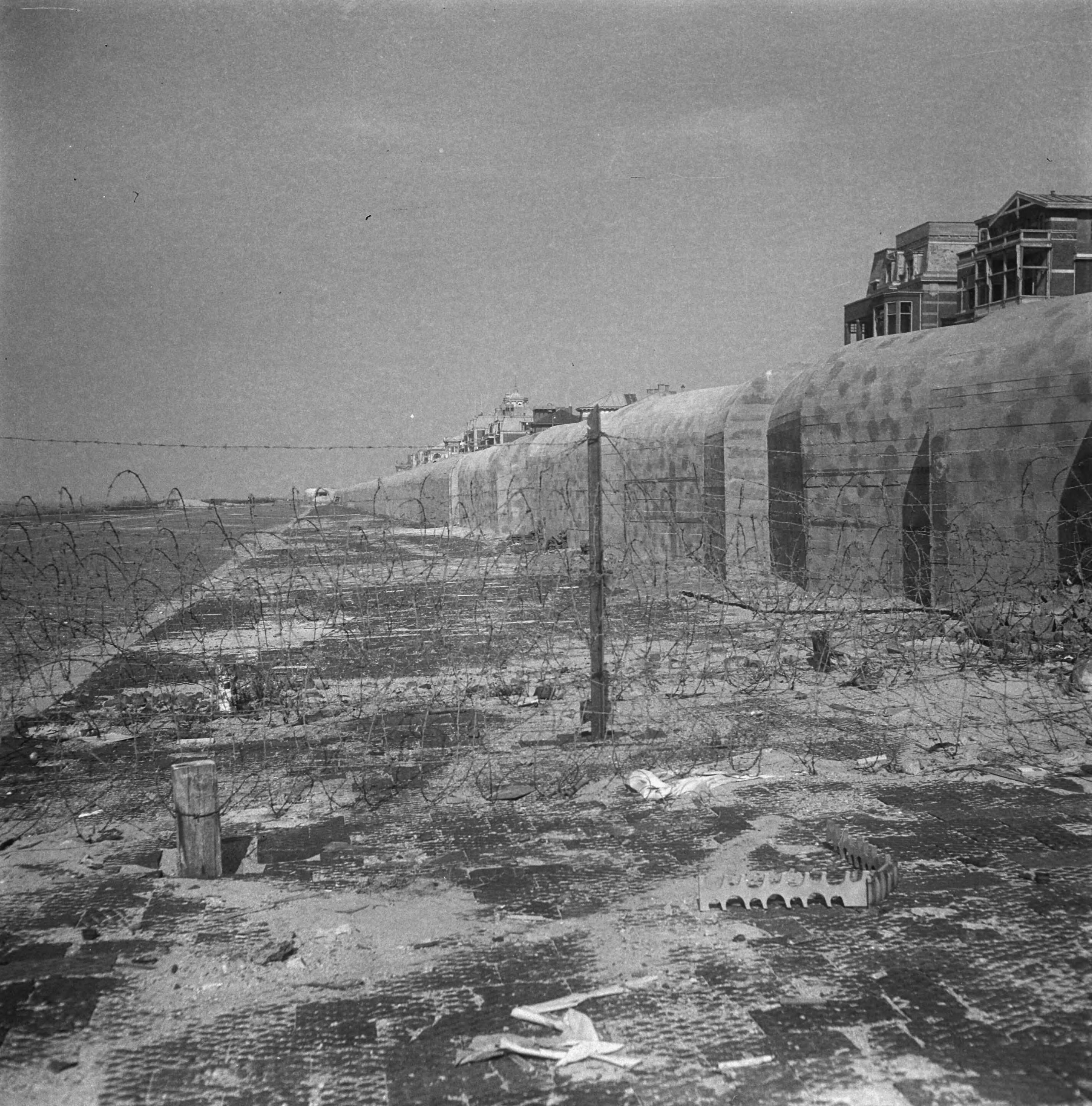 Scheveningen, overzicht van de strand en boulevardversperringen Atlantikwall