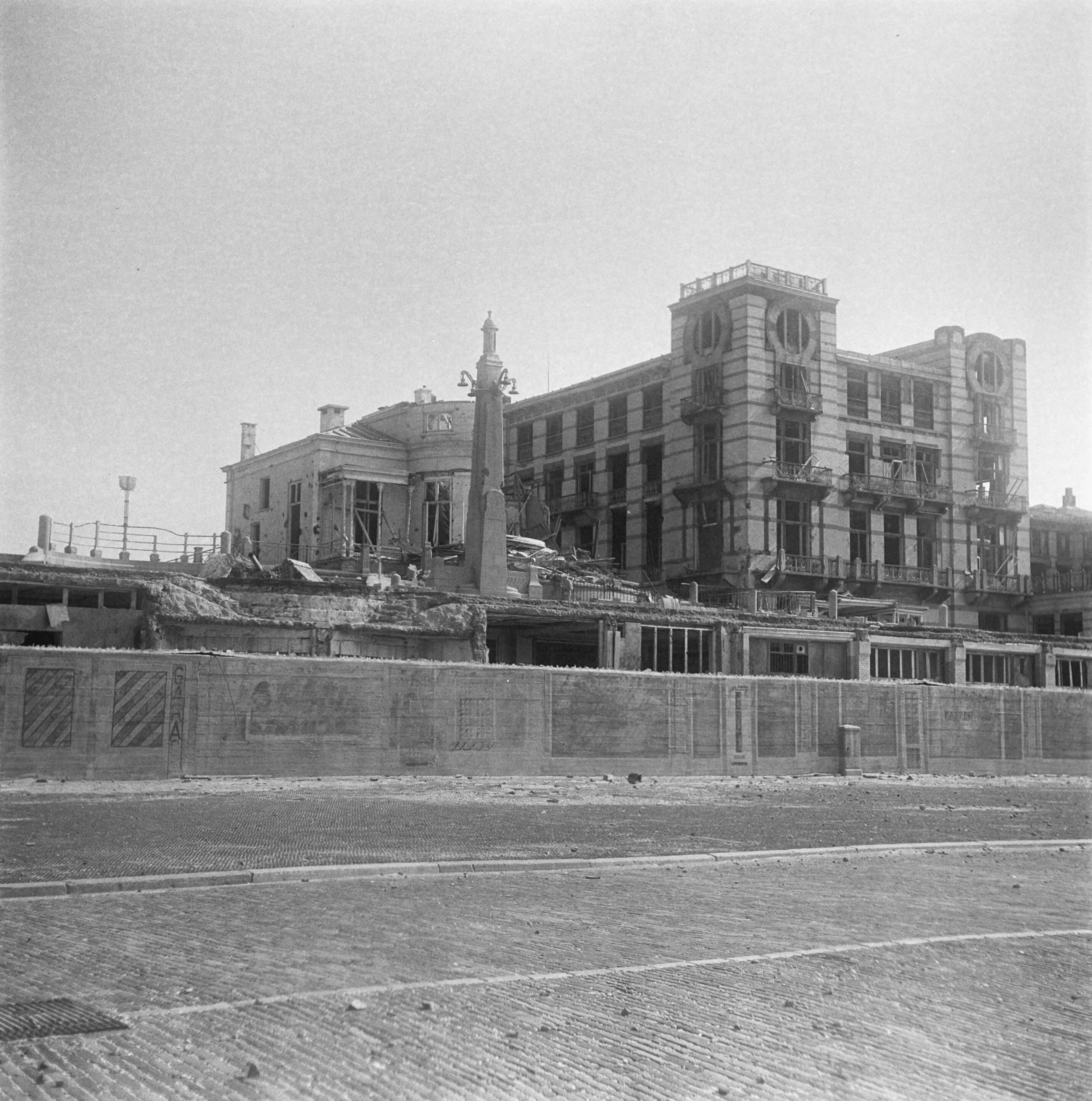 Scheveningen, overzicht van de strand en boulevardversperringen Atlantikwall