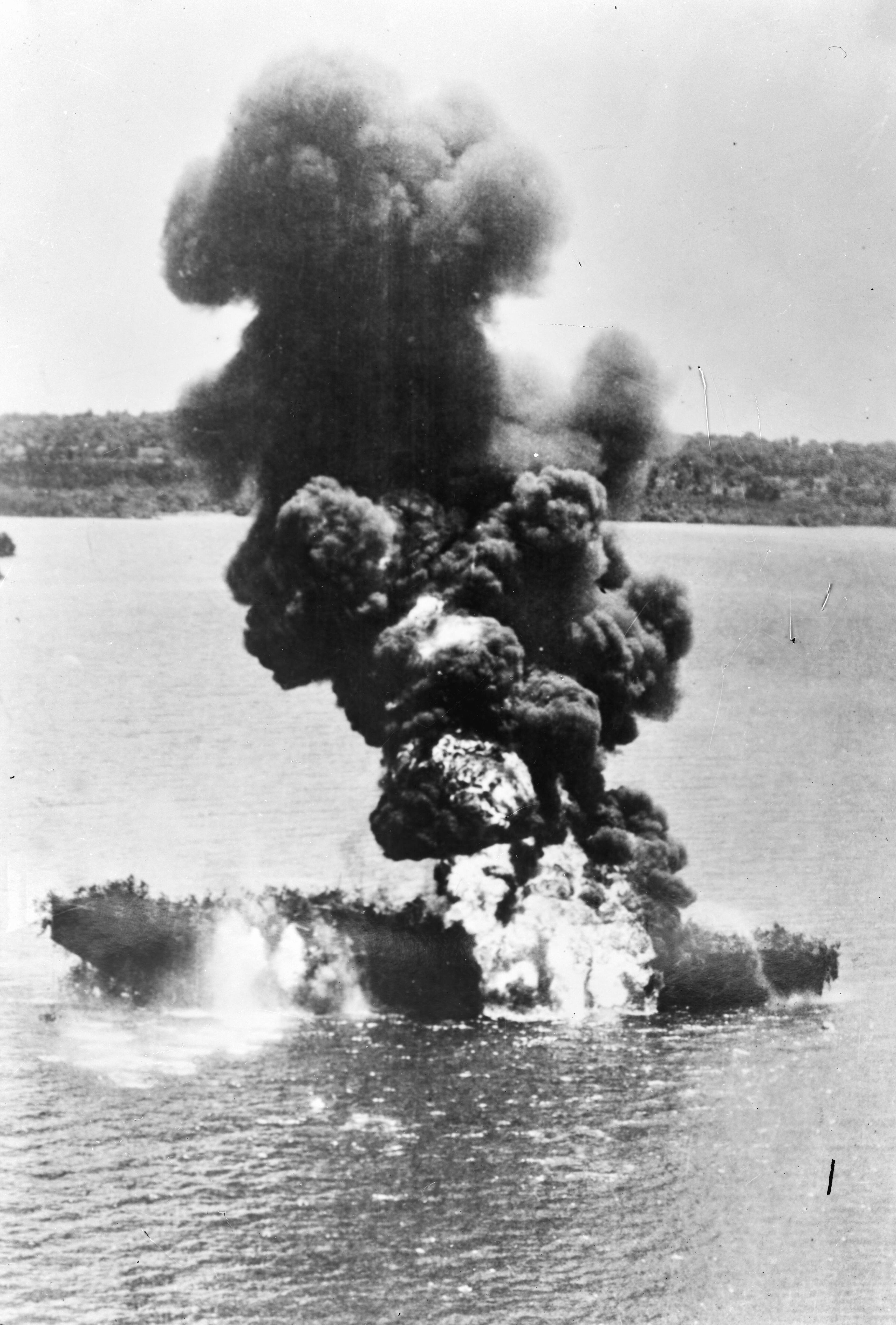 Een olietanker in brand geschoten door geallieerde vliegers