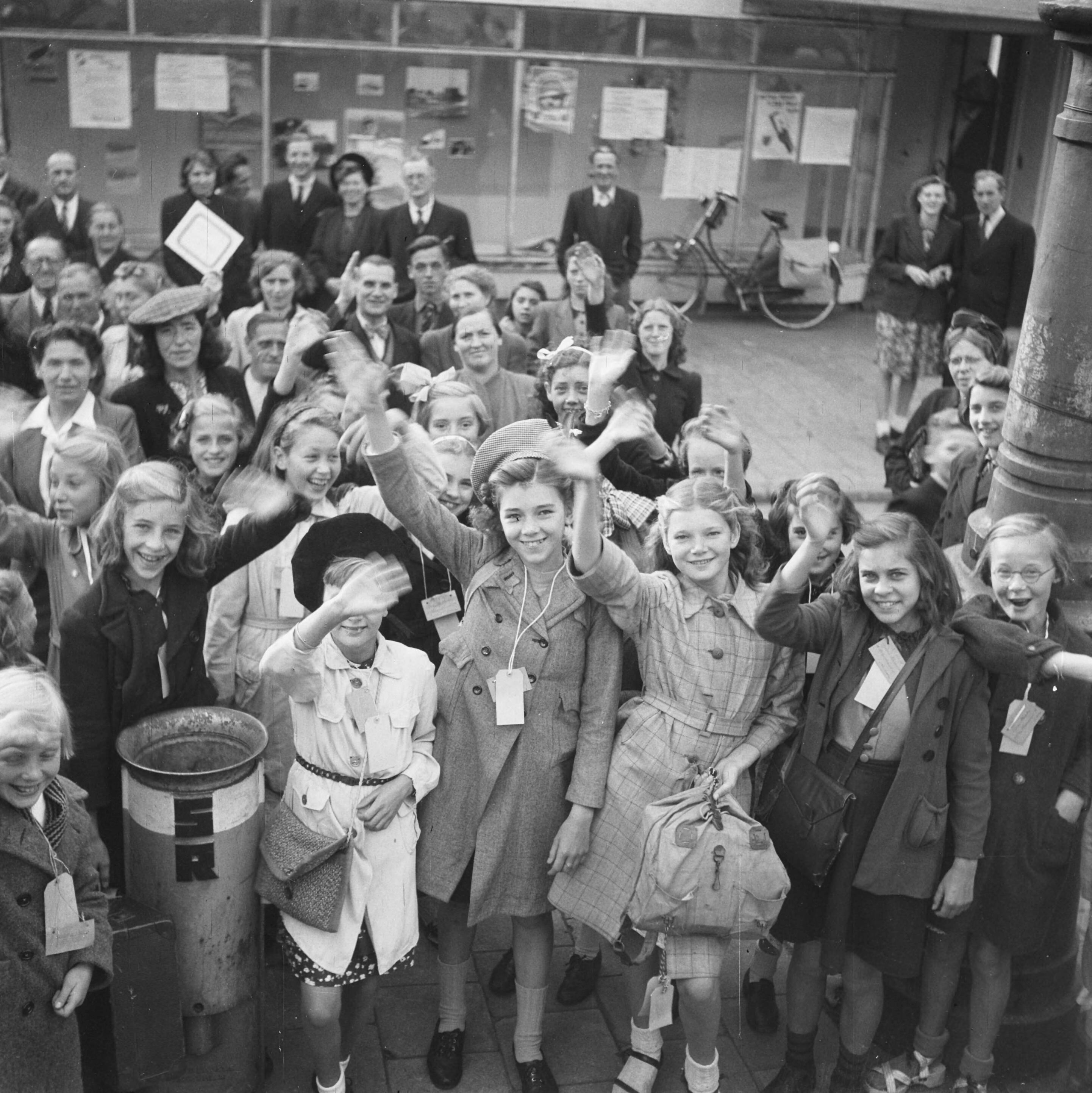 Kinderen zwaaien en staan klaar voor vertrek