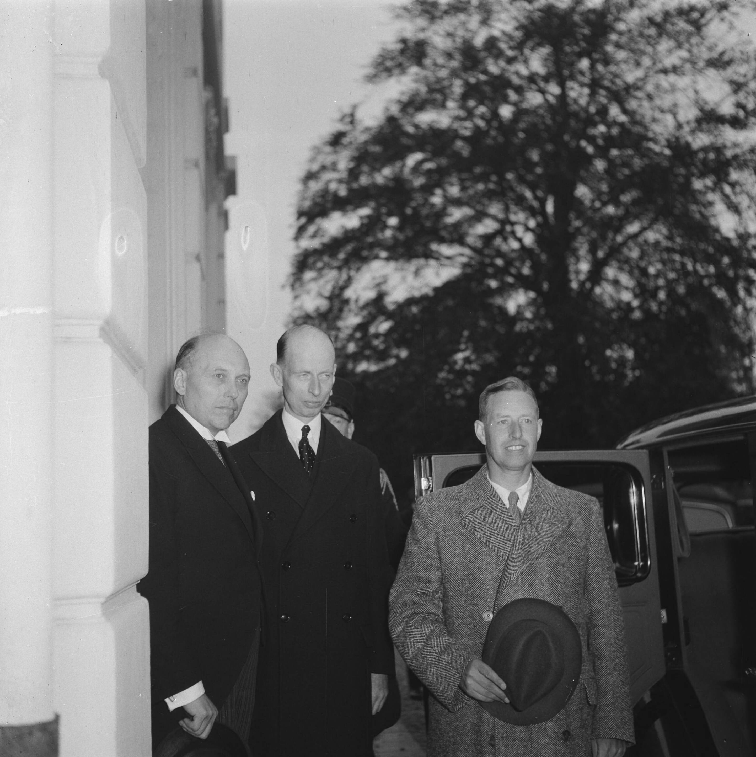 Gouverneur-Generaal A.W.L. Tjarda Van Starkenborgh Stachouwer (rechts) met minister-president Schermerhorn en minister Van Kleffens in Den Haag