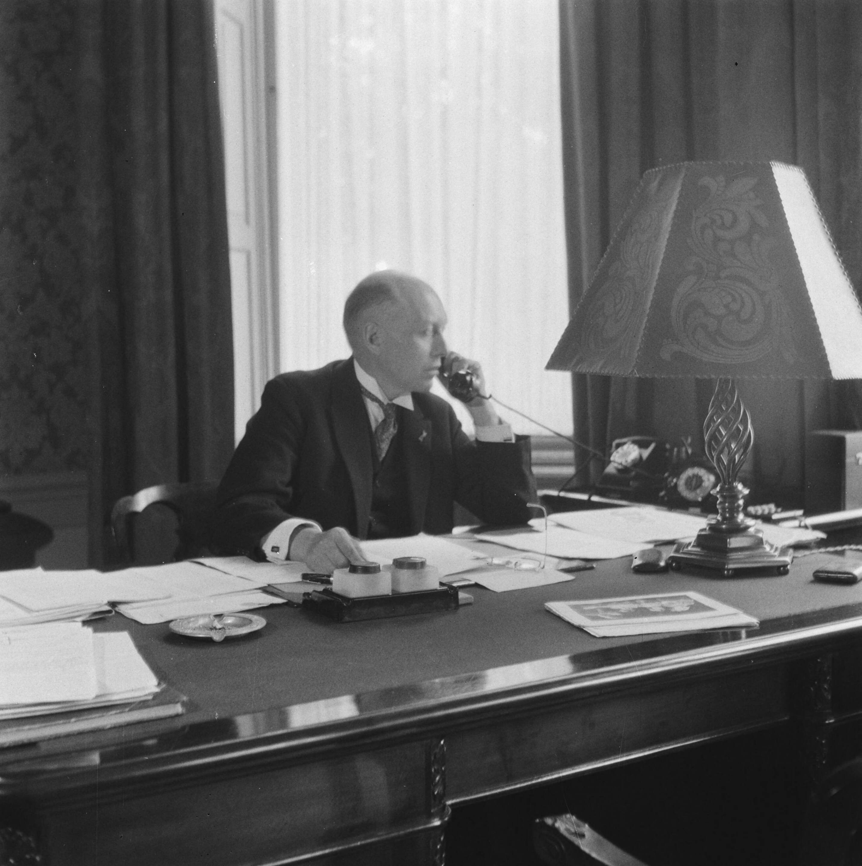 Minister-president W. Schermerhorn in zijn werkkamer