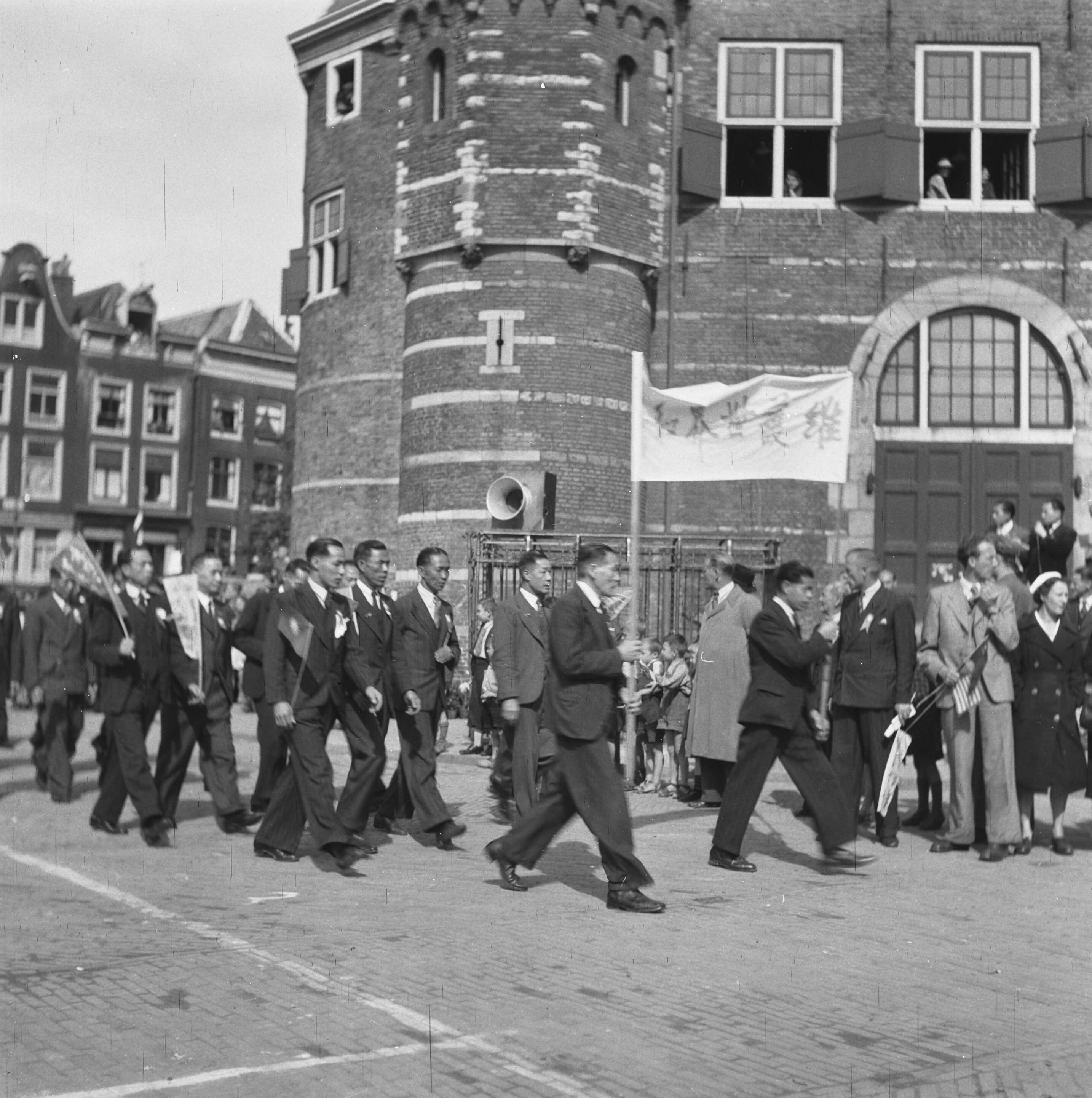 Optocht langs De Waag op de Nieuwmarkt