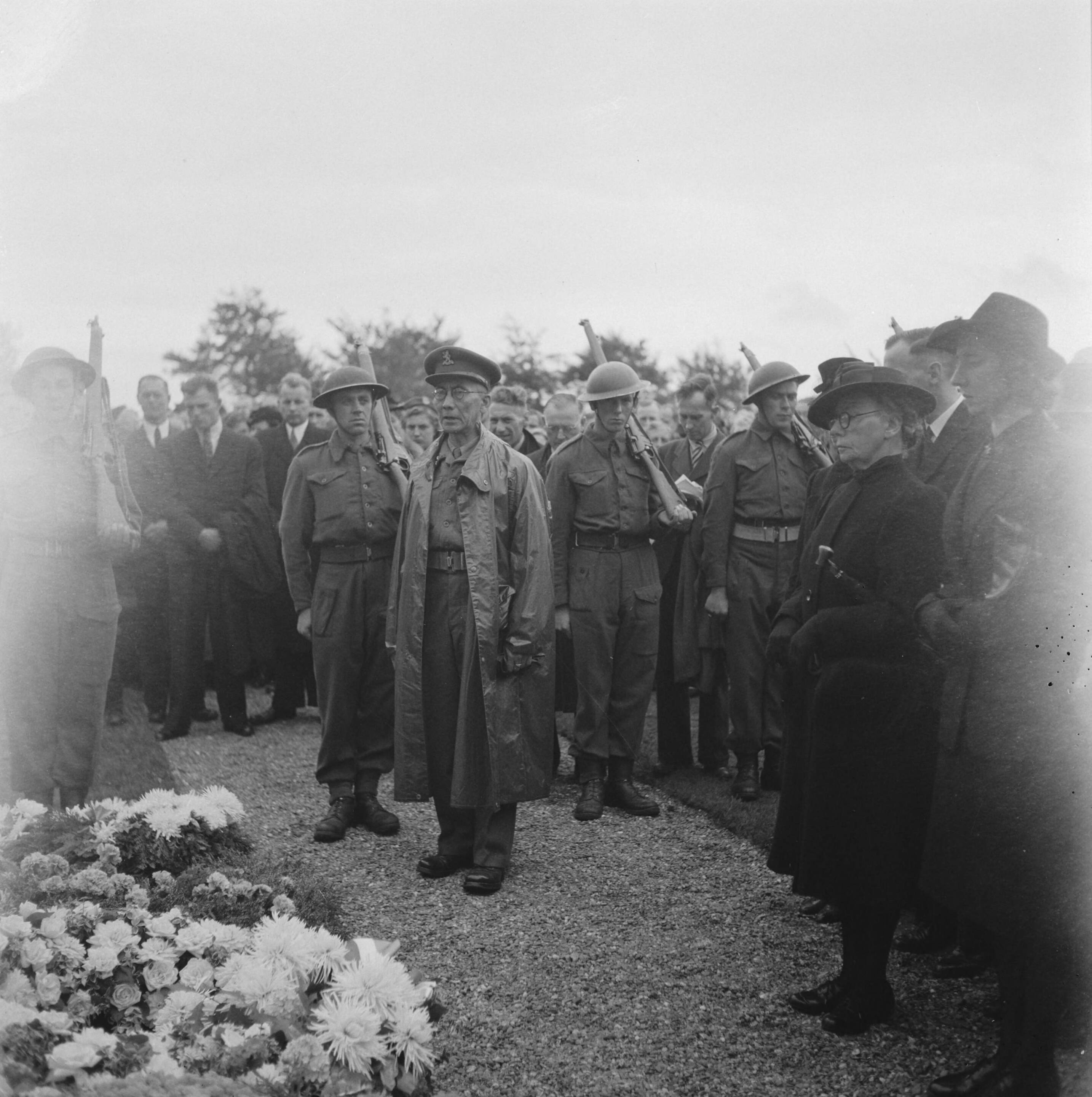 Jan Thijssen bijgenaamd "Lange Jan" , in leven leider van de radioafdeling Nederlandse Binnenlandse strijdkrachten, met militaire eer te Loenen begraven. Generaal-majoor Koot spreekt namens prins Bernhard een woord van hulde en afscheid aan de groeve