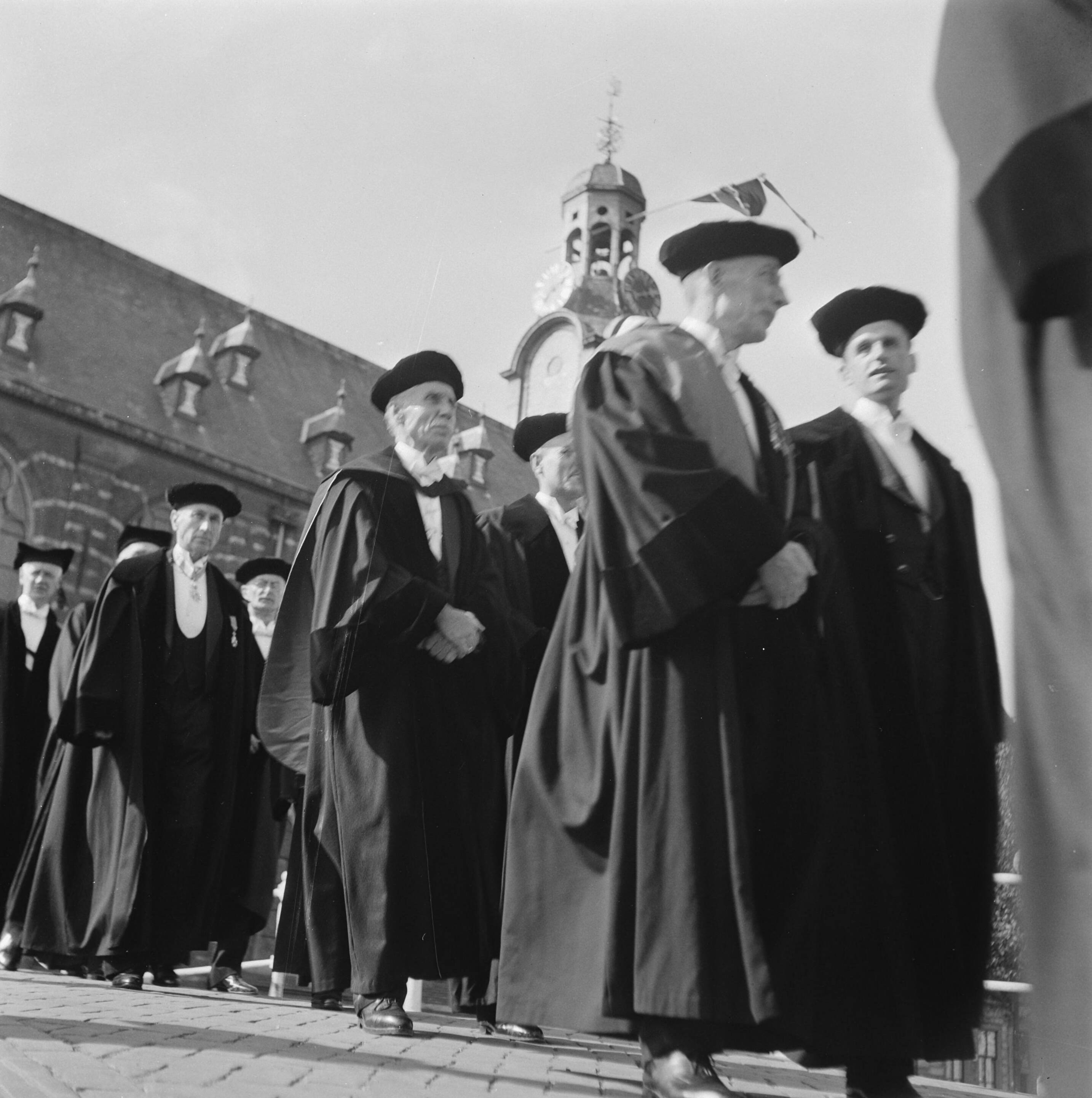 Stoet hoogleraren op weg naar Pieterskerk vanuit het Academiegebouw.