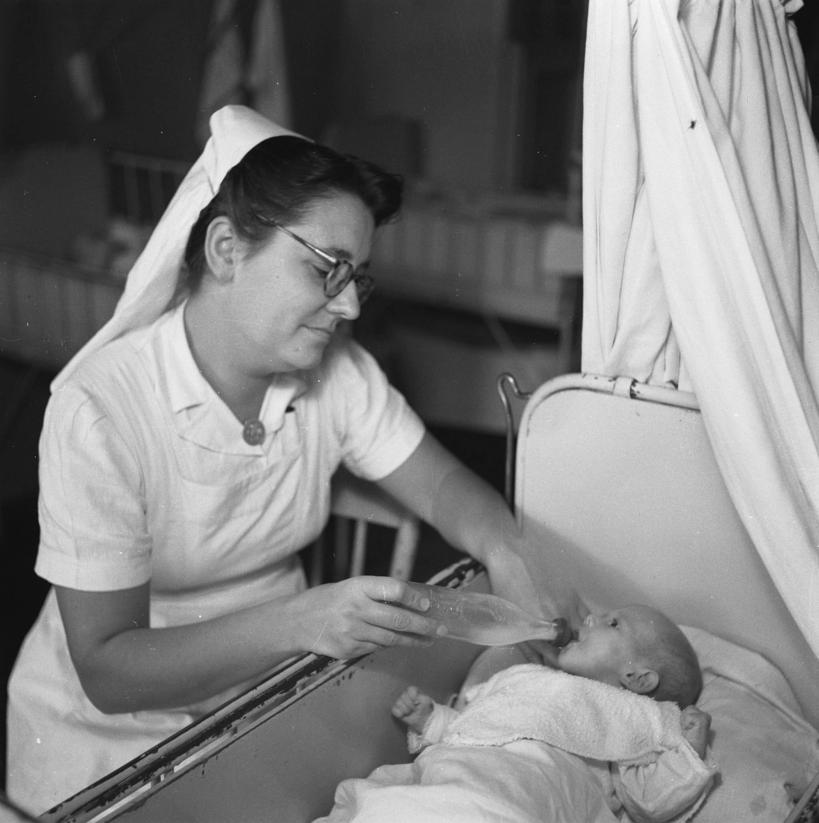 Baby krijgt de fles van een verpleegster