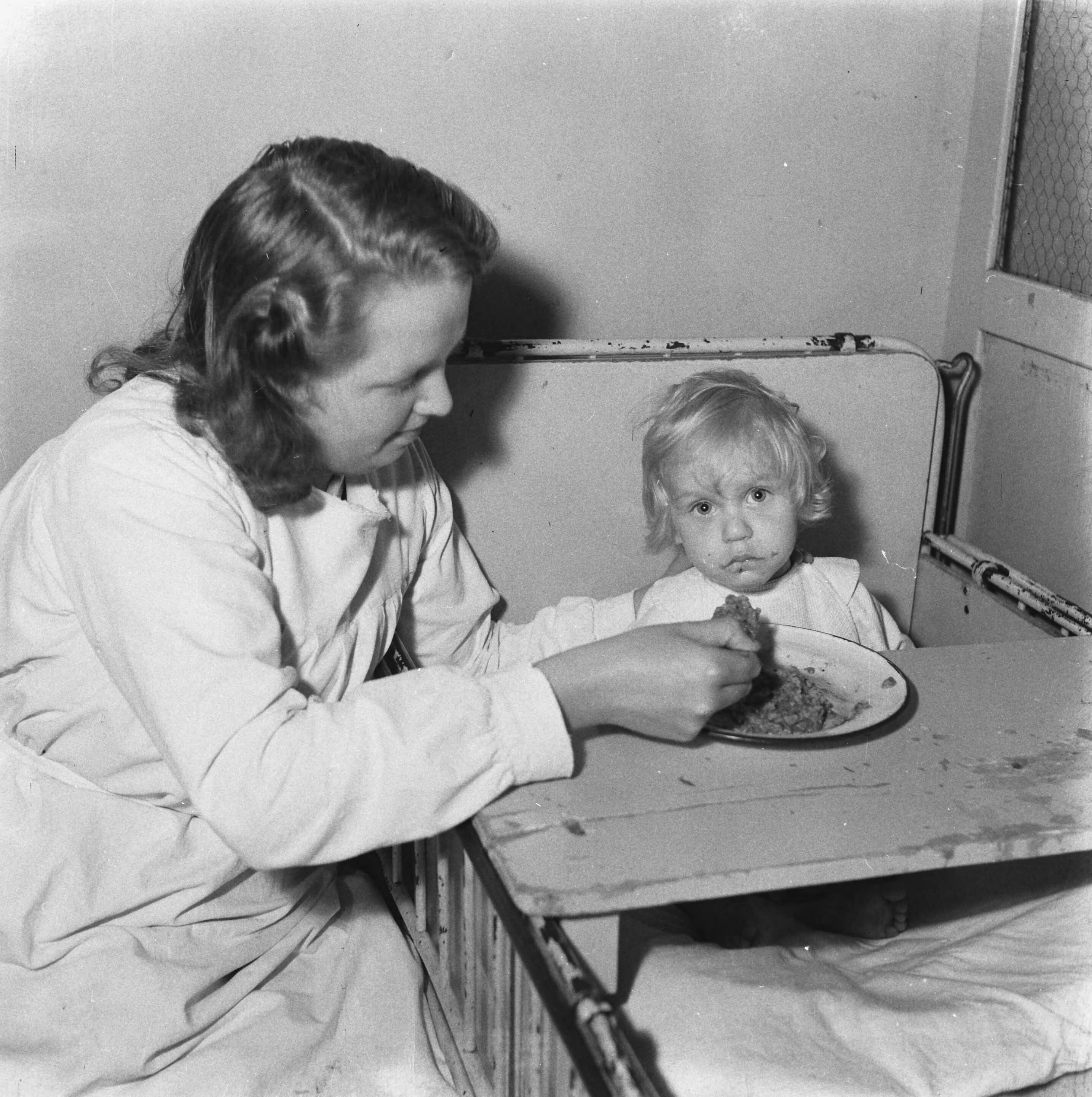 Verpleegster voert peuter