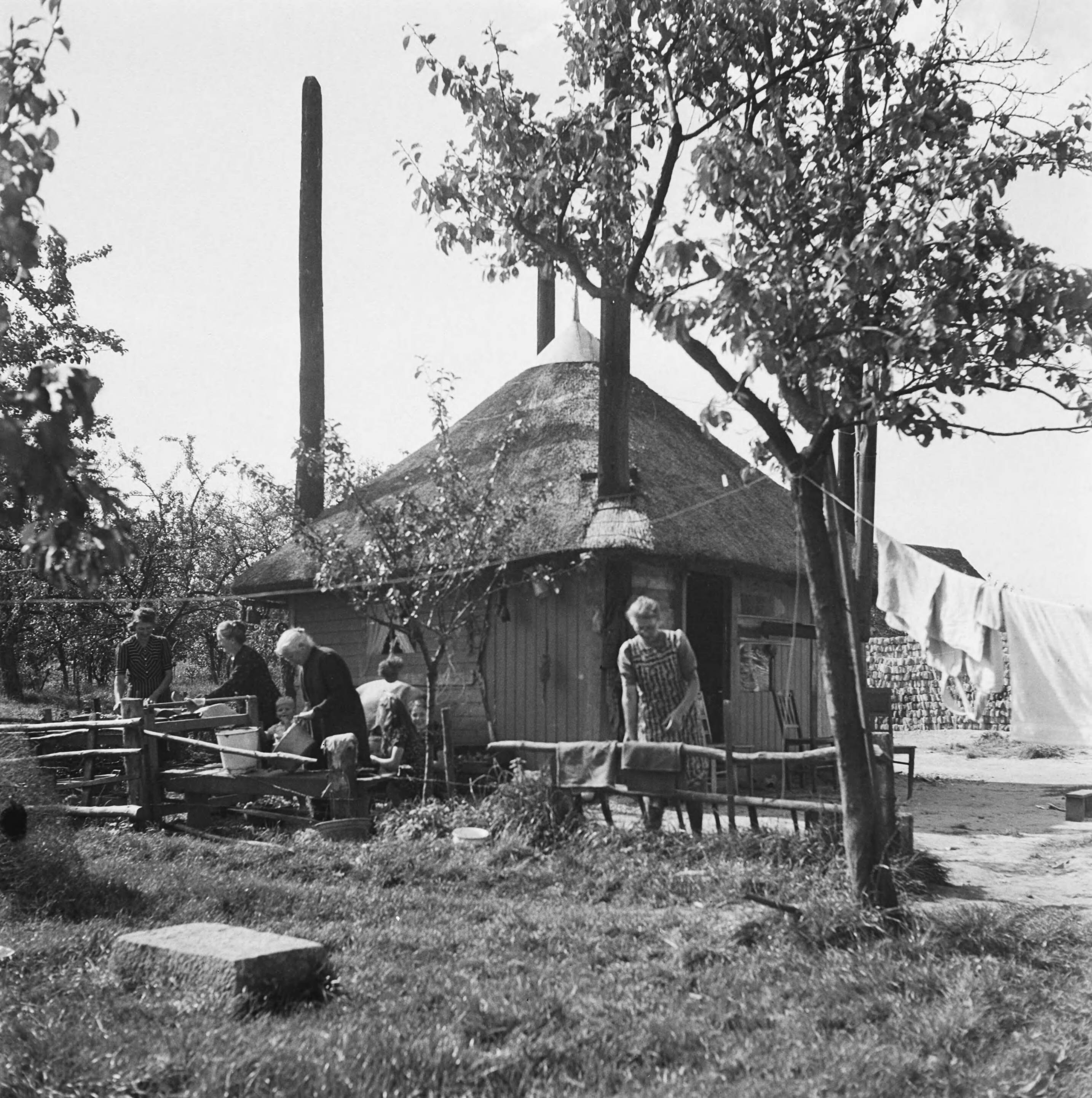 Serie: Noodwoning 10 vrouwen doen buiten de was voor een tot noodwoning omgebouwde hooimijt