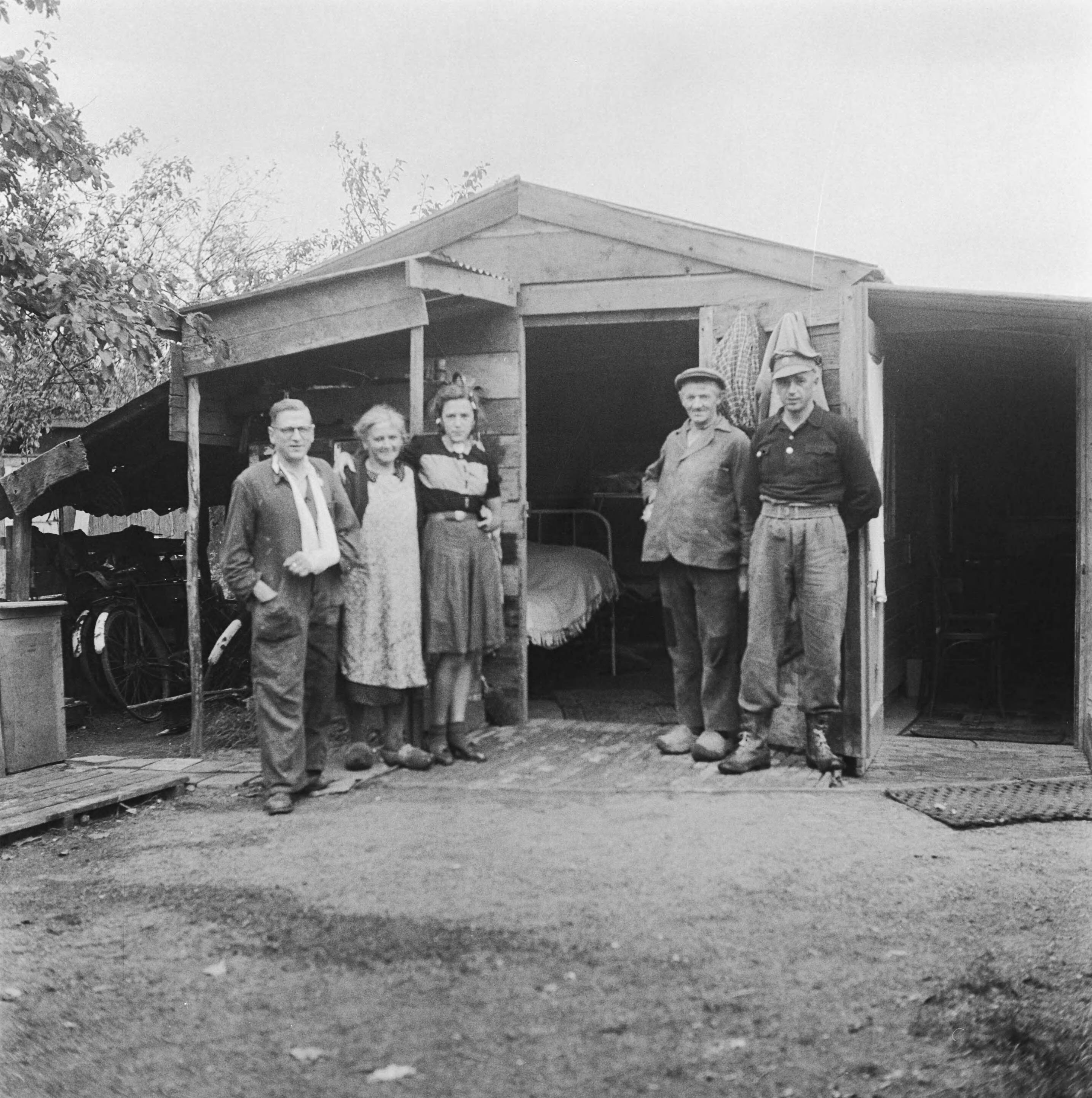 Serie: Noodwoning 13 Bewoners poseren voor de noodwoning