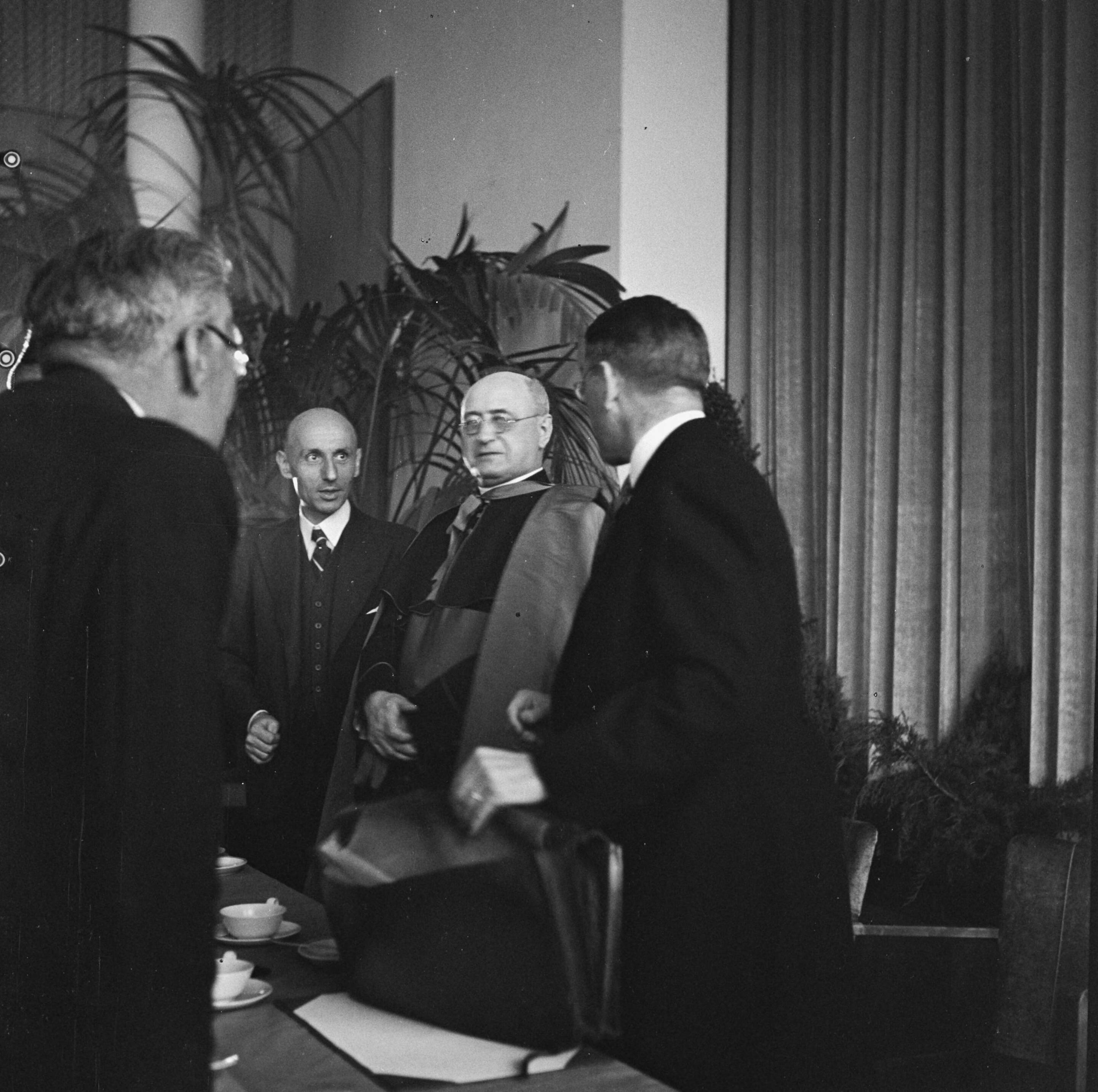 Congres van de Katholieke Actie te Utrecht. In gesprek vlnr. vicaris-generaal mgr. D. Huurdeman