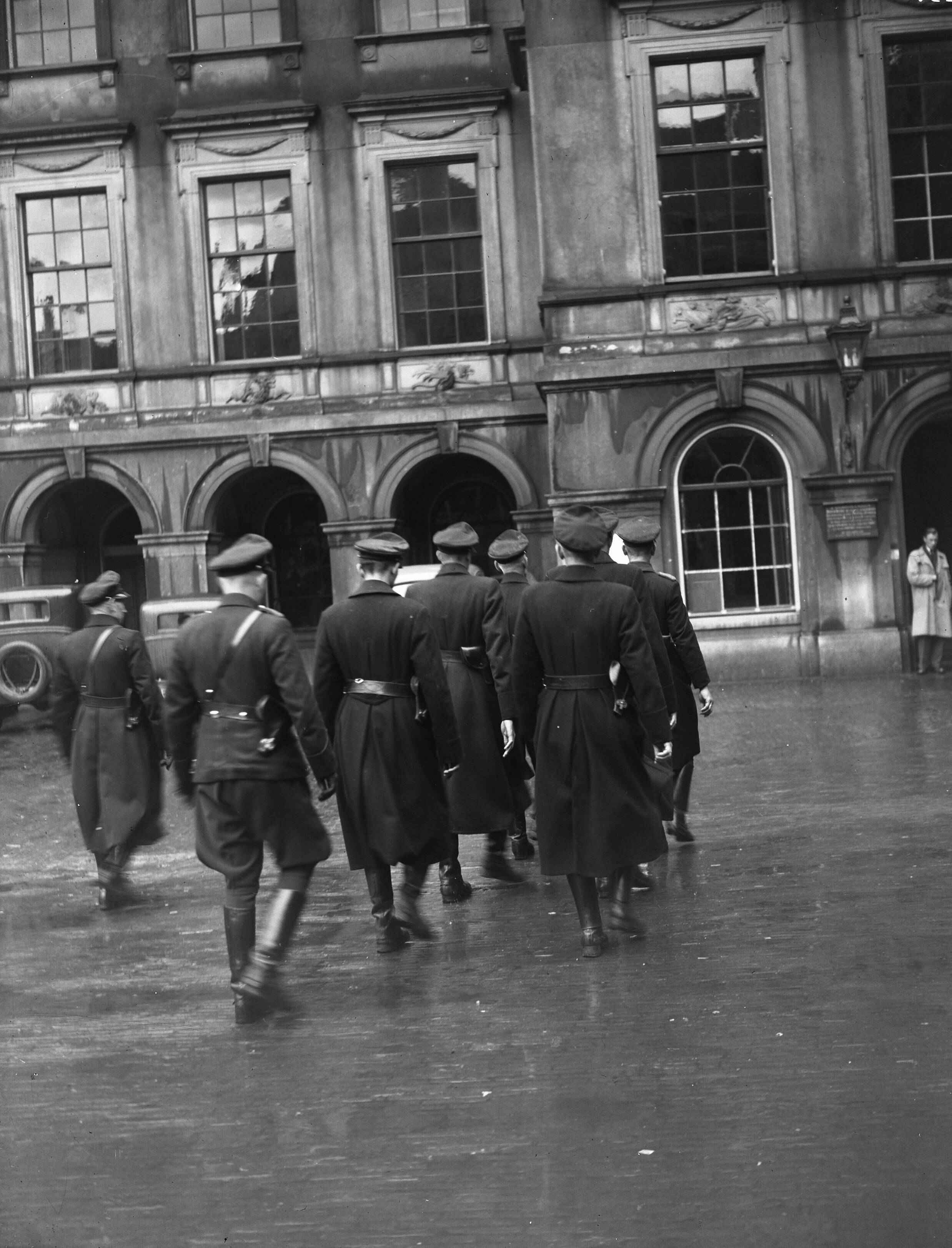 Binnenhof te Den Haag. Opening Tweede Kamer. Een eenheid politie-agenten