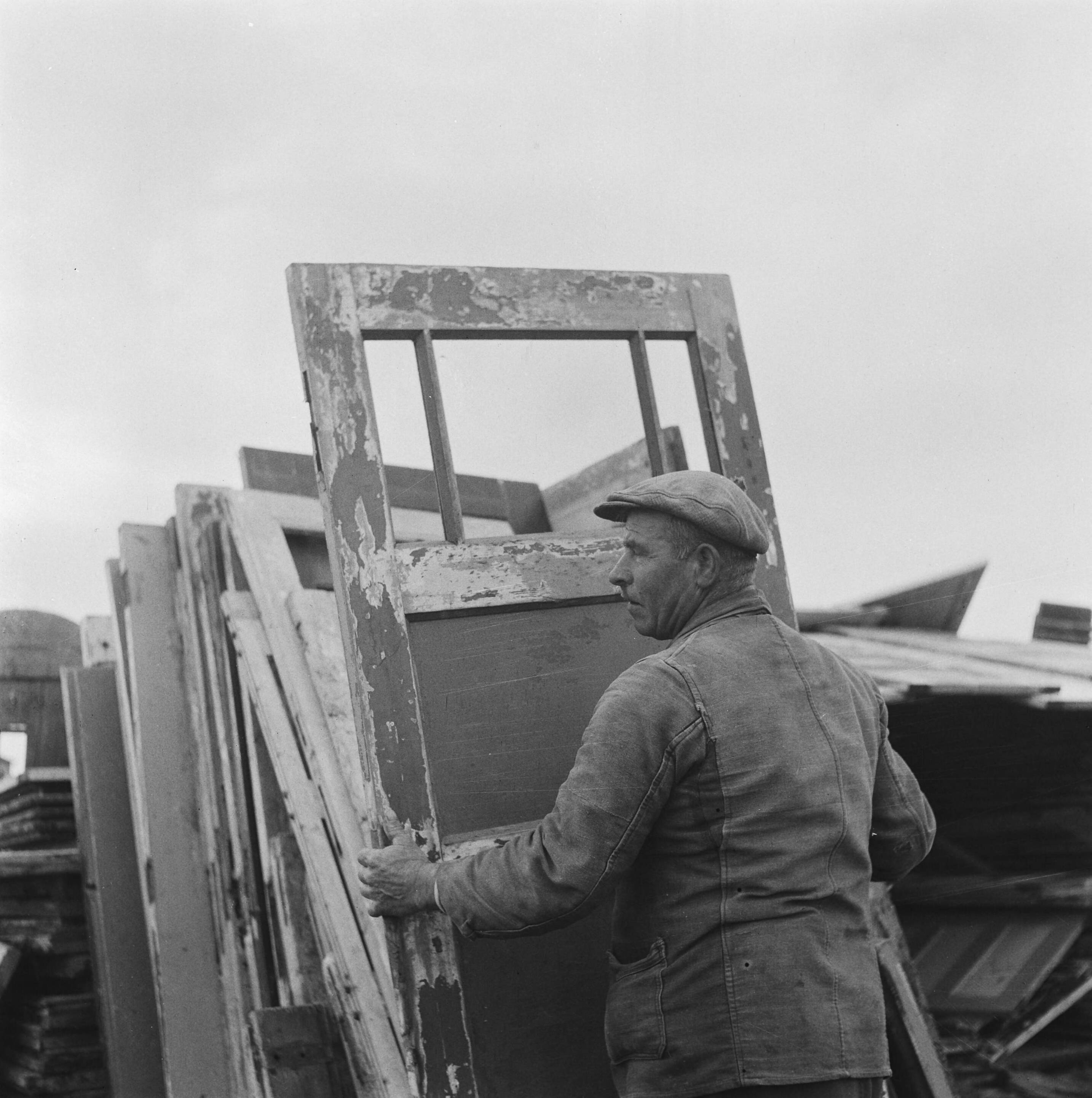 Drooglegging van de Wieringermeerpolder. Man met deuren