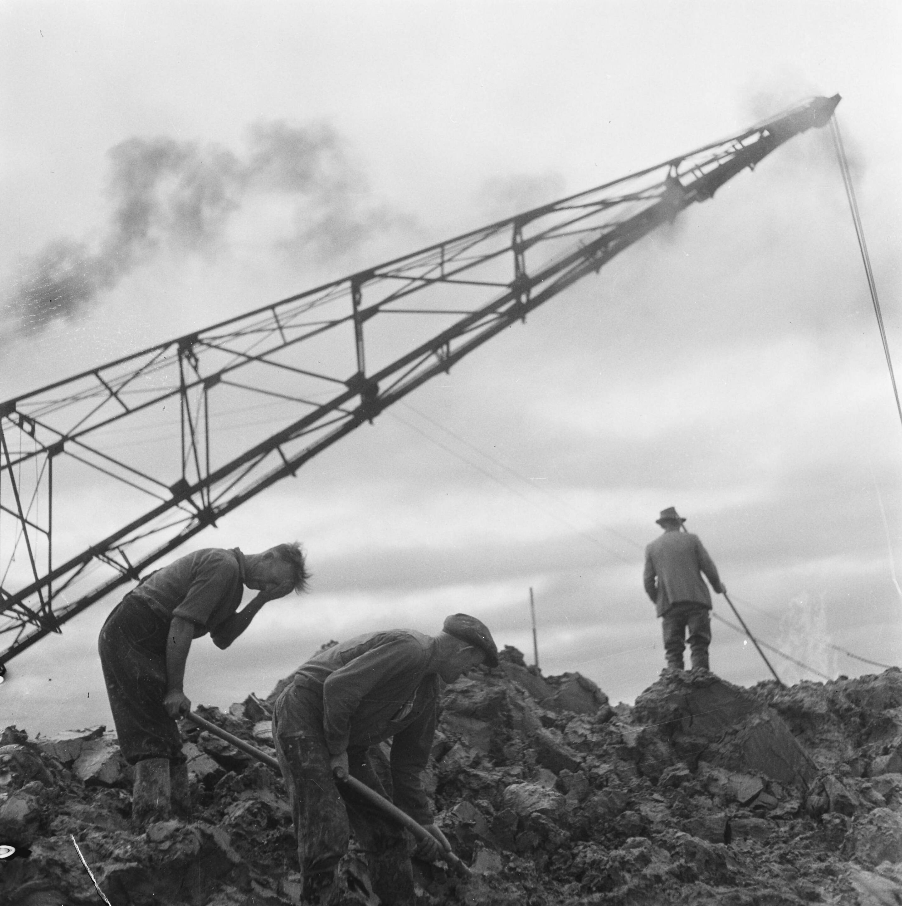 Herstelling Nollegat. Kraan en arbeiders