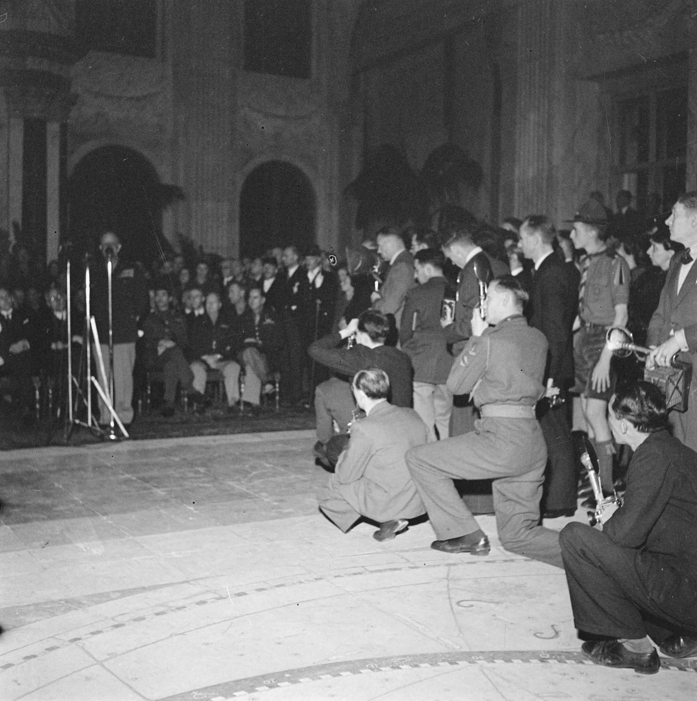 Eisenhower in Amsterdam. Burgerzaal van het Paleis op de Dam. Dankwoord van generaal Eisenhower. Fotografen