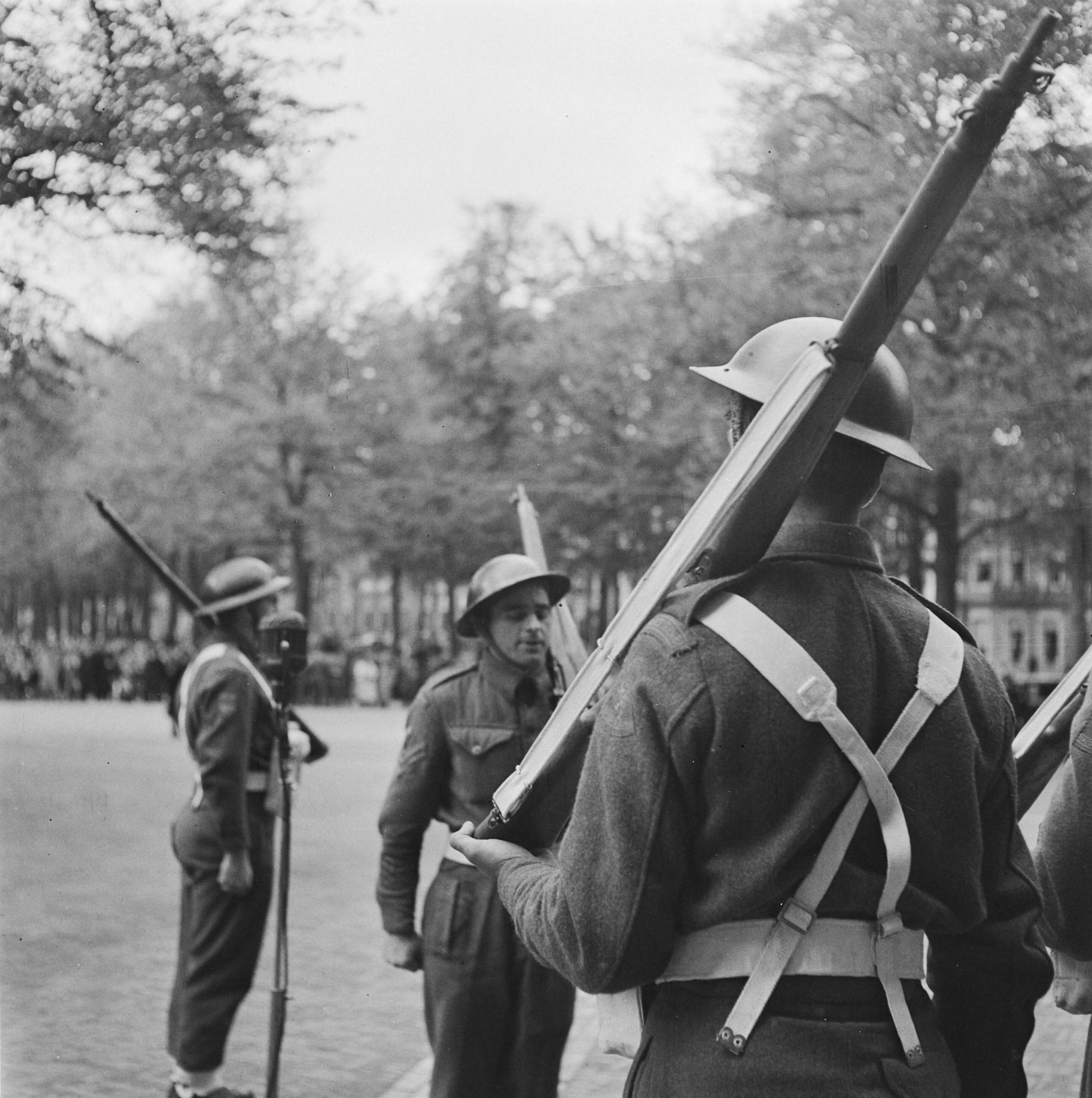 Schildwacht bij paleis Lange Voorhout. Aflossing van de wacht