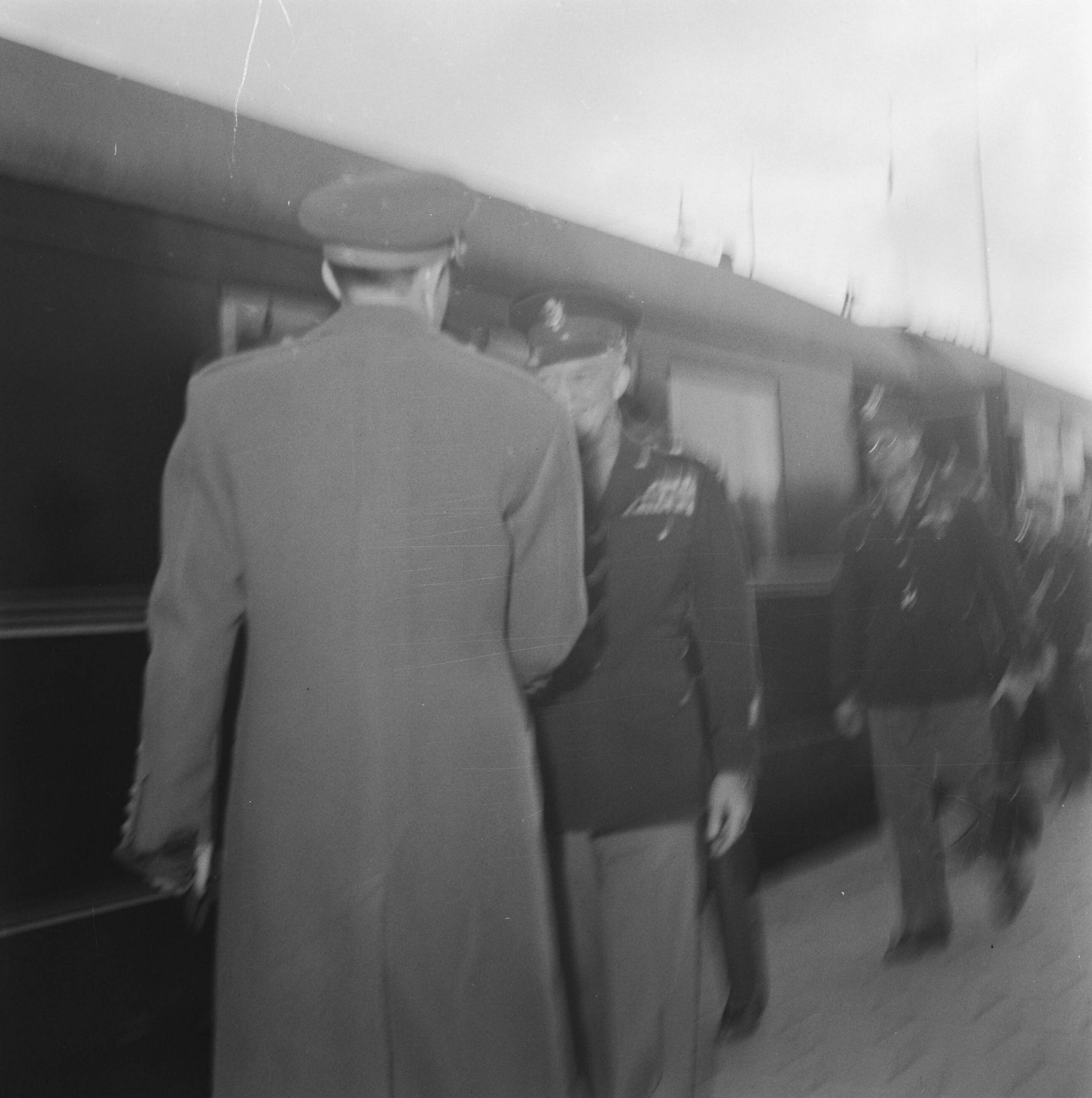 Generaal Eisenhower wordt op een station ontvangen door Prins Bernhard