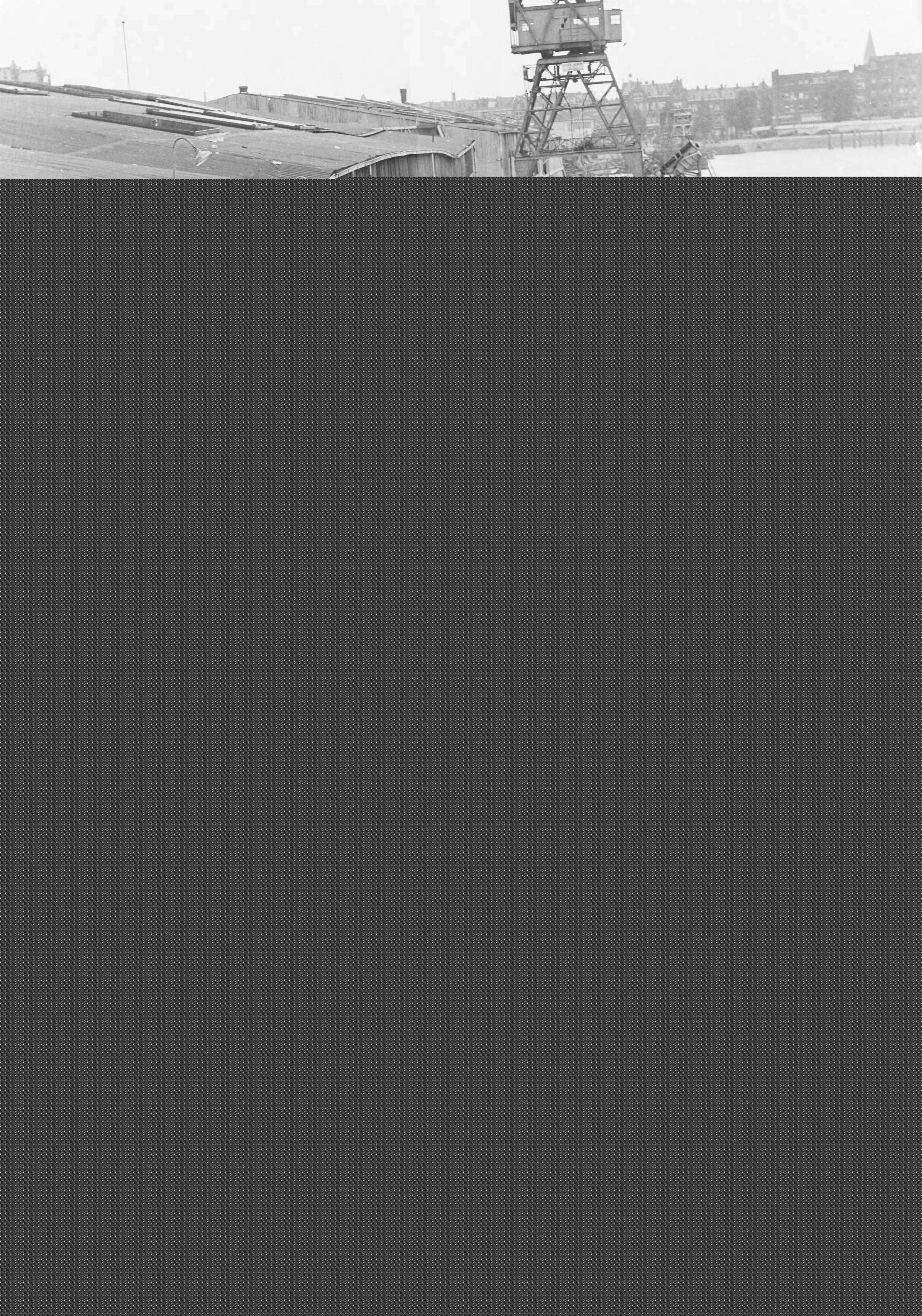 Beeld van de vernielingen in de Rotterdamse haven na de Bevrijding