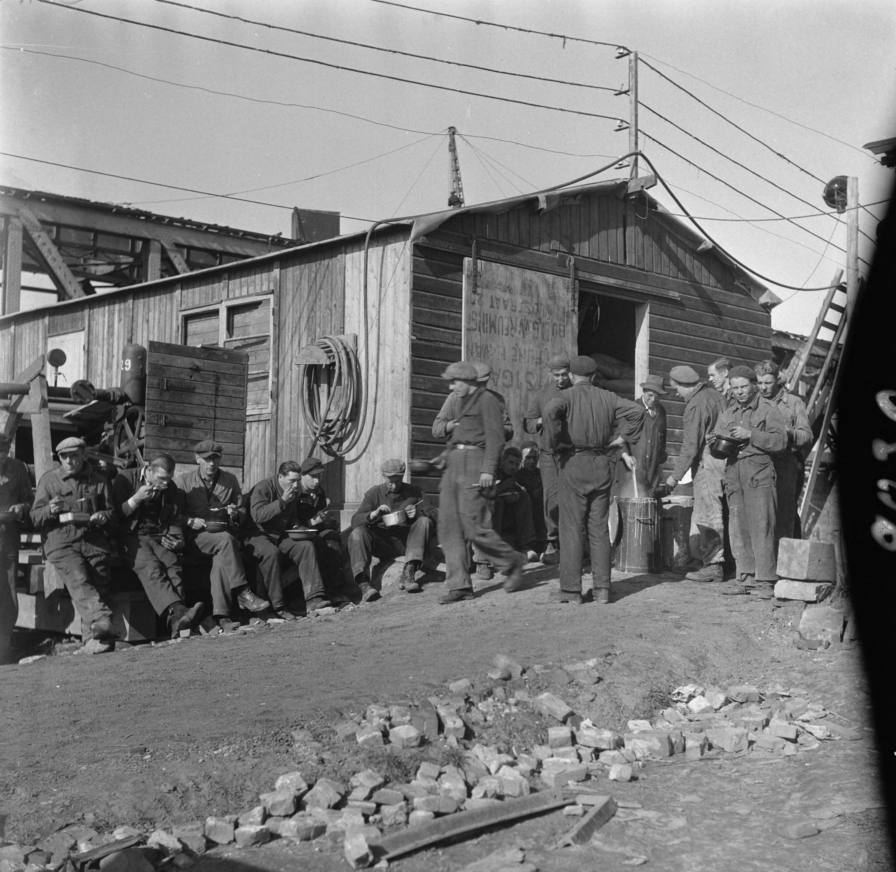 Het monteren van een brugboog van de "Waterloobridge" in de brug bij Oosterbeek
