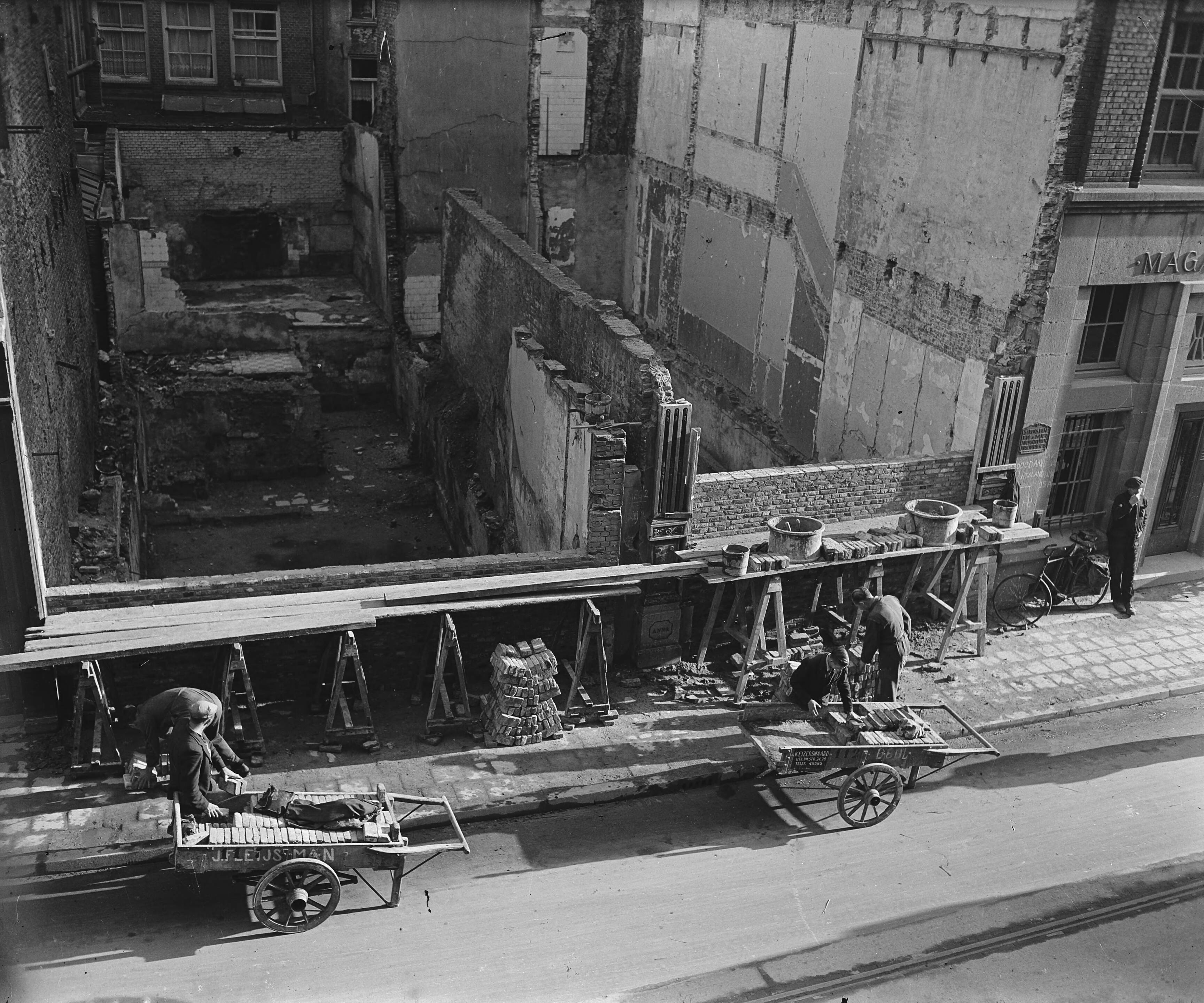 "Een wandeling door Amsterdam" twee lege kavels worden aan de straatzijde dichtgemetseld