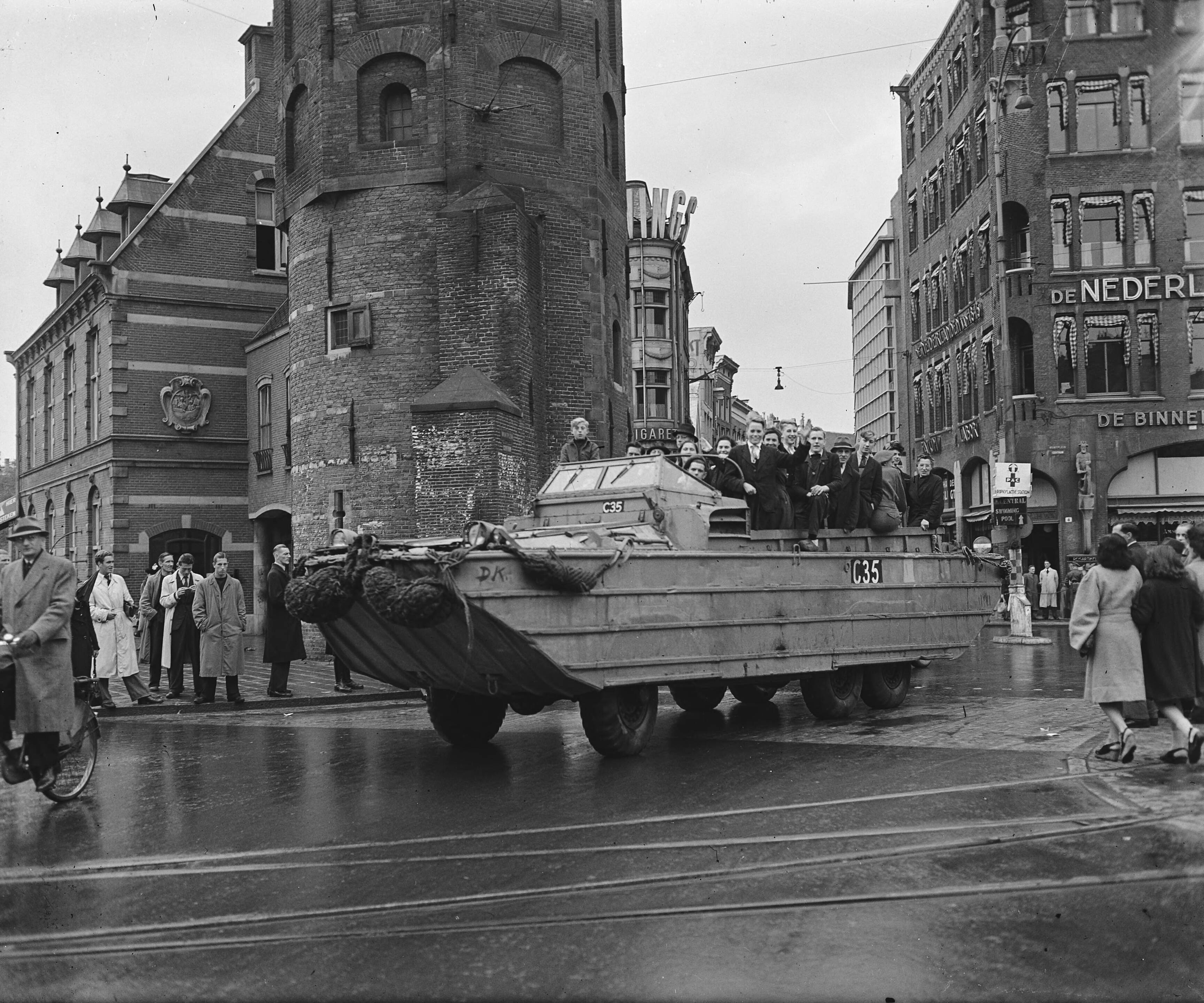 DUKW militair amfibisch voertuig op het Muntplein te Amsterdam