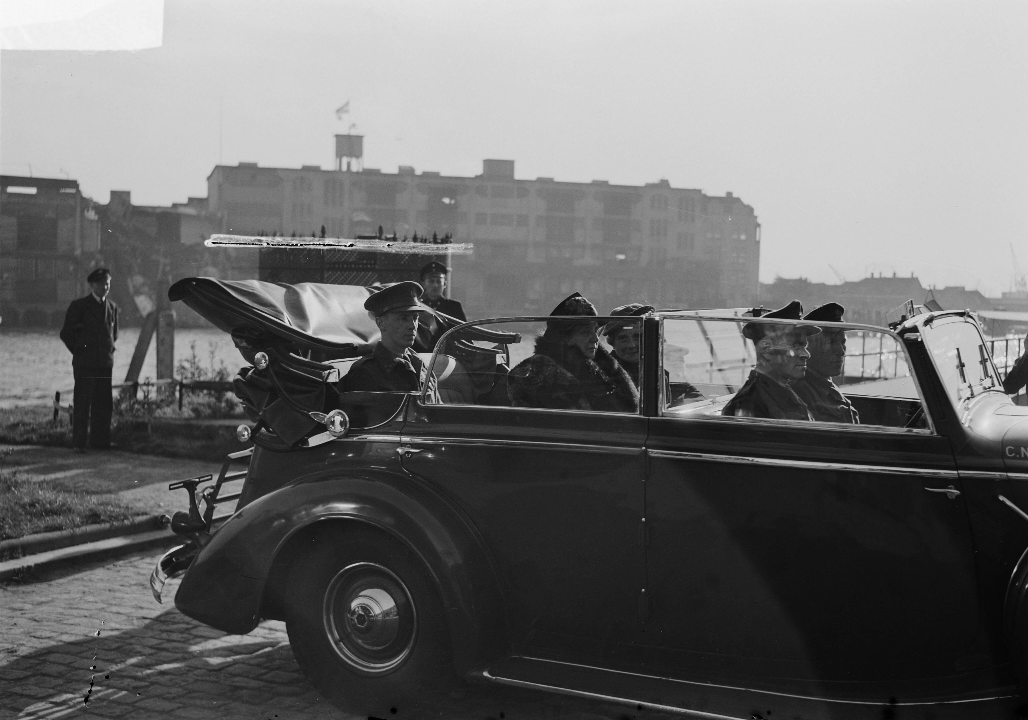 Rotterdam, reportage van de opleving in het Havenbedrijf Koningin Wilhelmina in een hofauto tijdens een bezoek