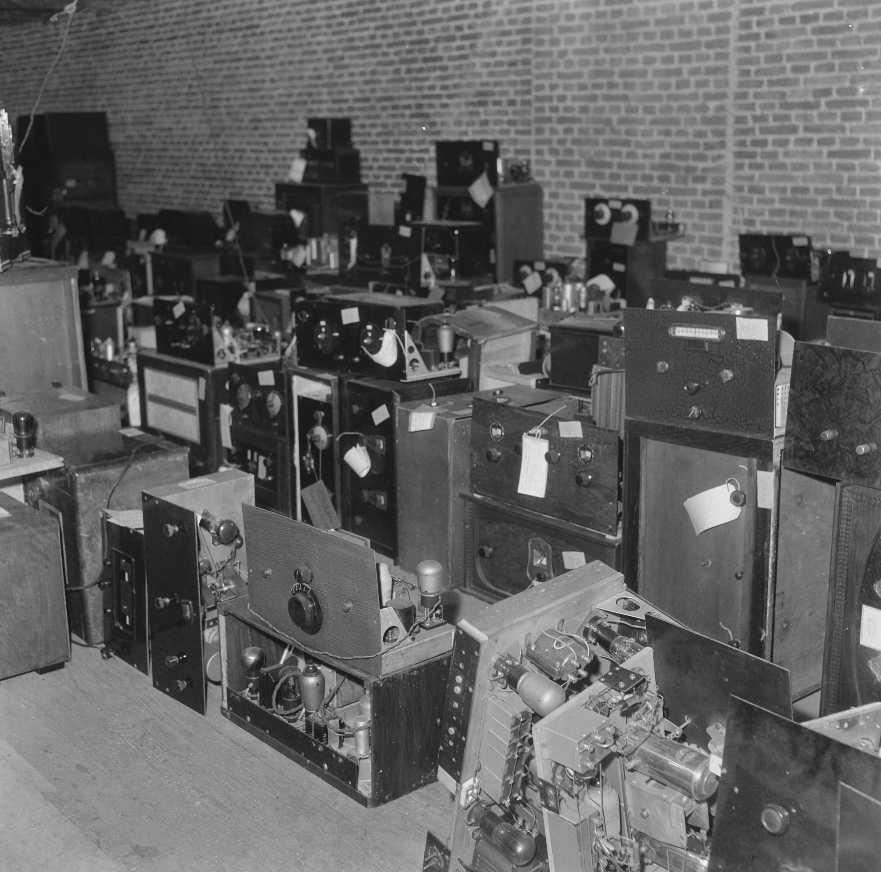 In het gemeentelijk Entrepotdok te Amsterdam bevinden zich duizenden radiotoestellen welke destijds door de Duitsers waren gevorderd en die nu weer aan de rechtmatige eigenaars worden teruggegeven.