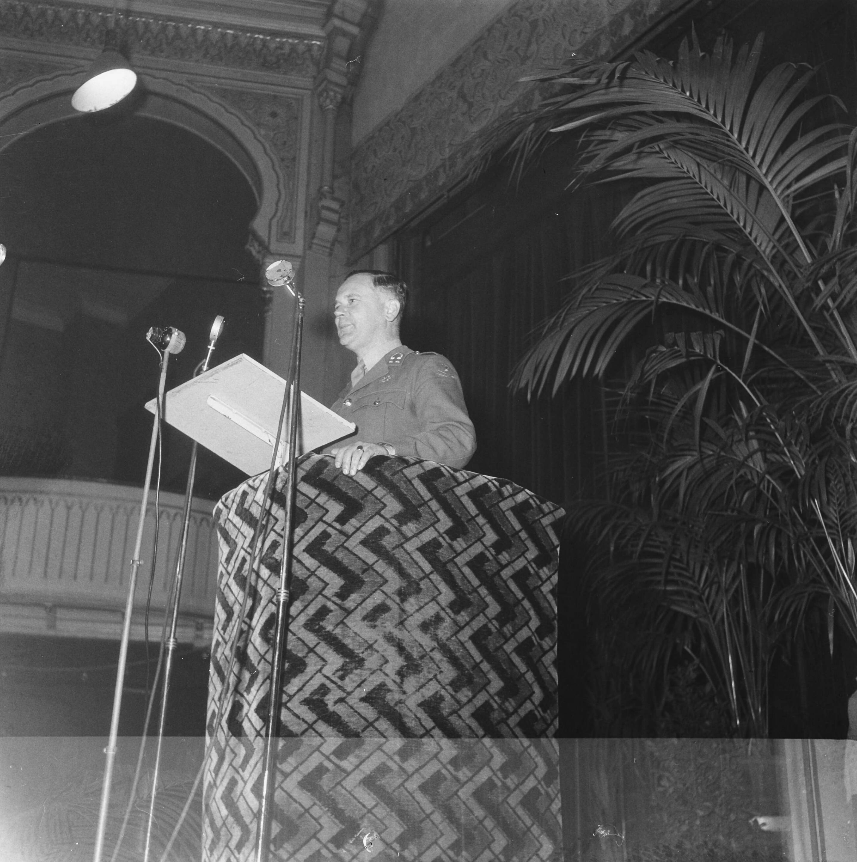 Generaal Kruis houdt een toespraak in de zaal van de Haagse Dierentuin