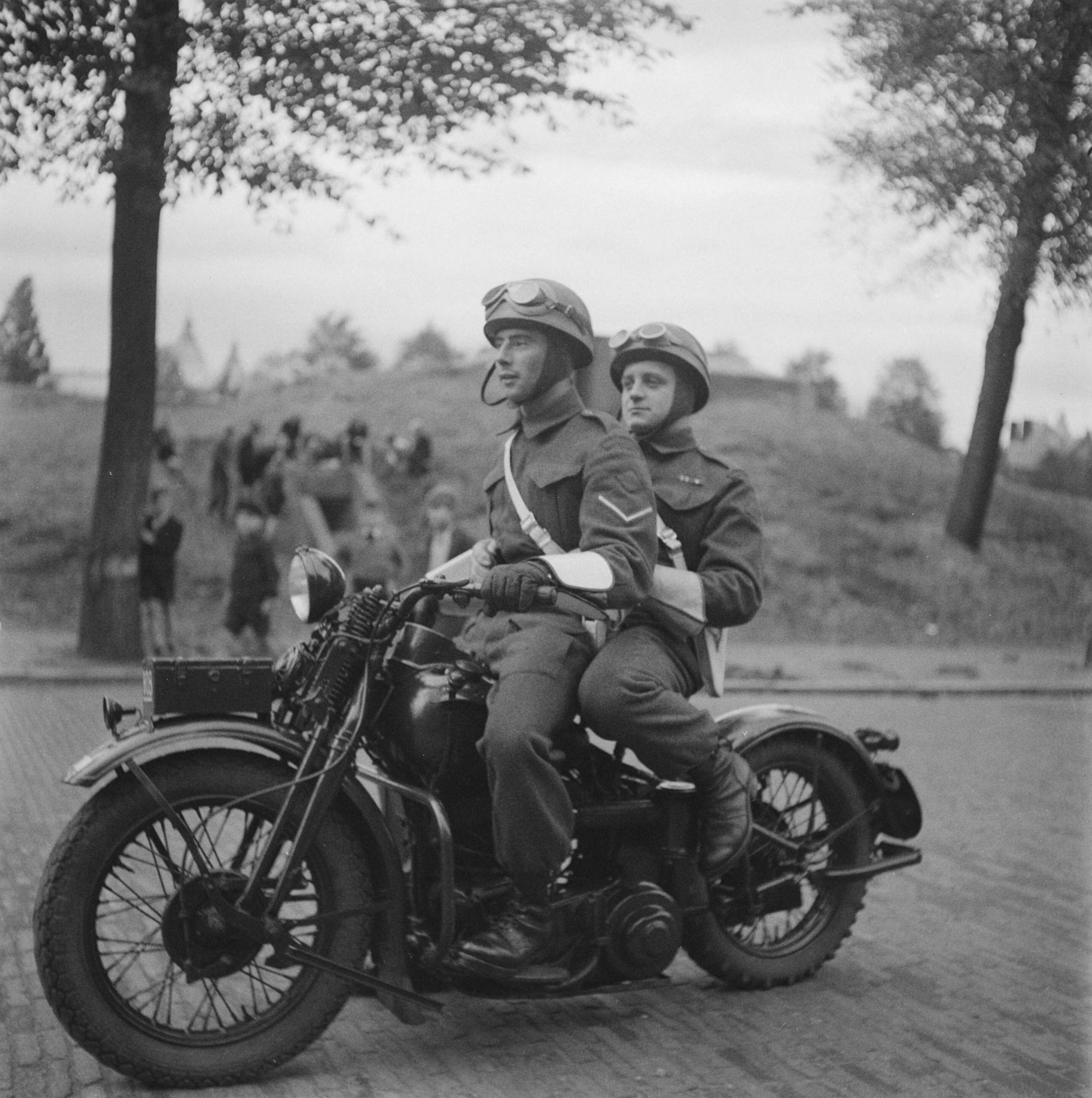 Twee militaire politiemannen op een motor