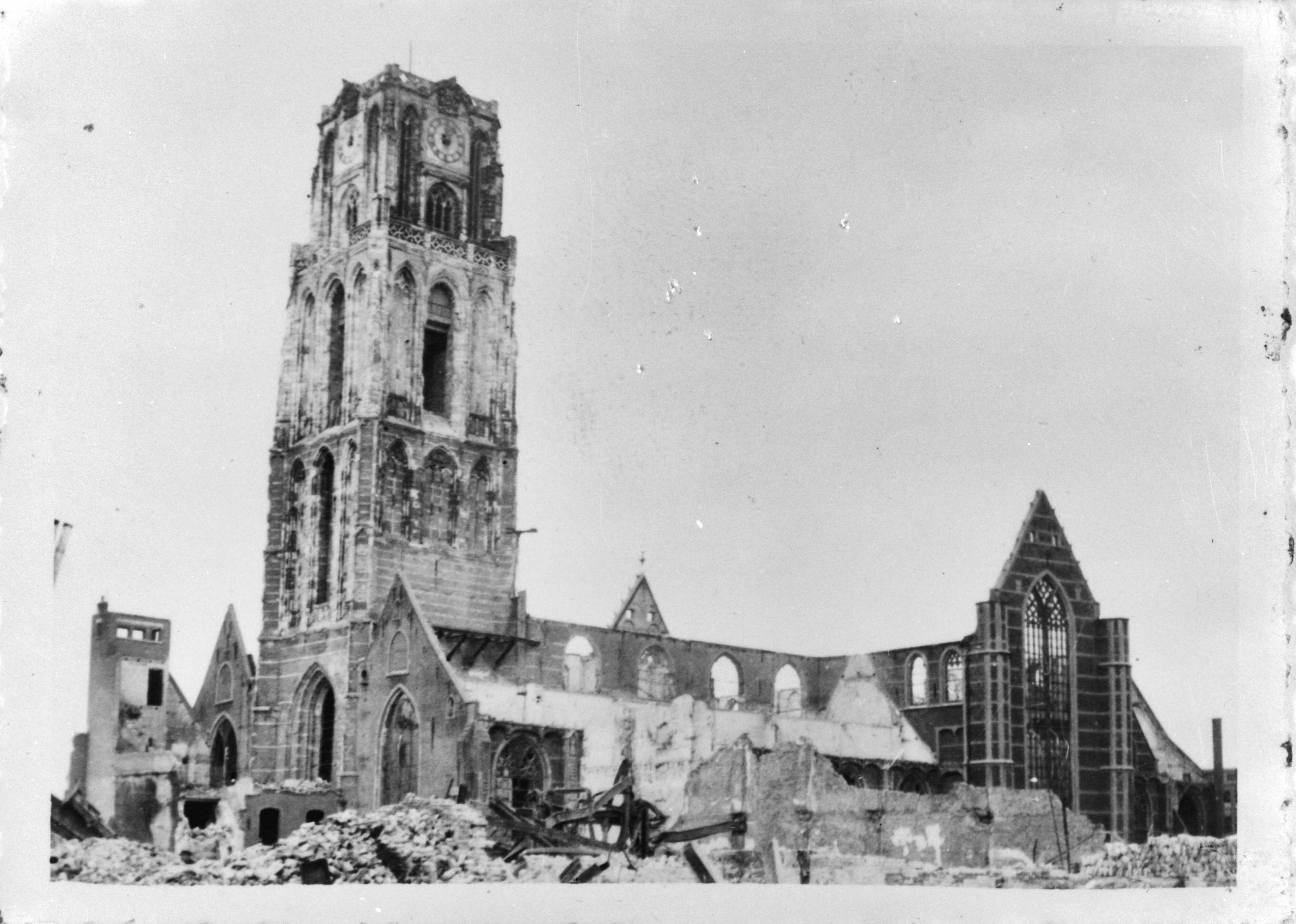 Repro Laurenskerk en omgeving na bombardement Rotterdam mei 1940