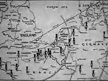 Kaart met door geallieerde vliegtuigen gebombardeerde doelen periode 1 - 14 maart 1943 in bezette landen in Europa