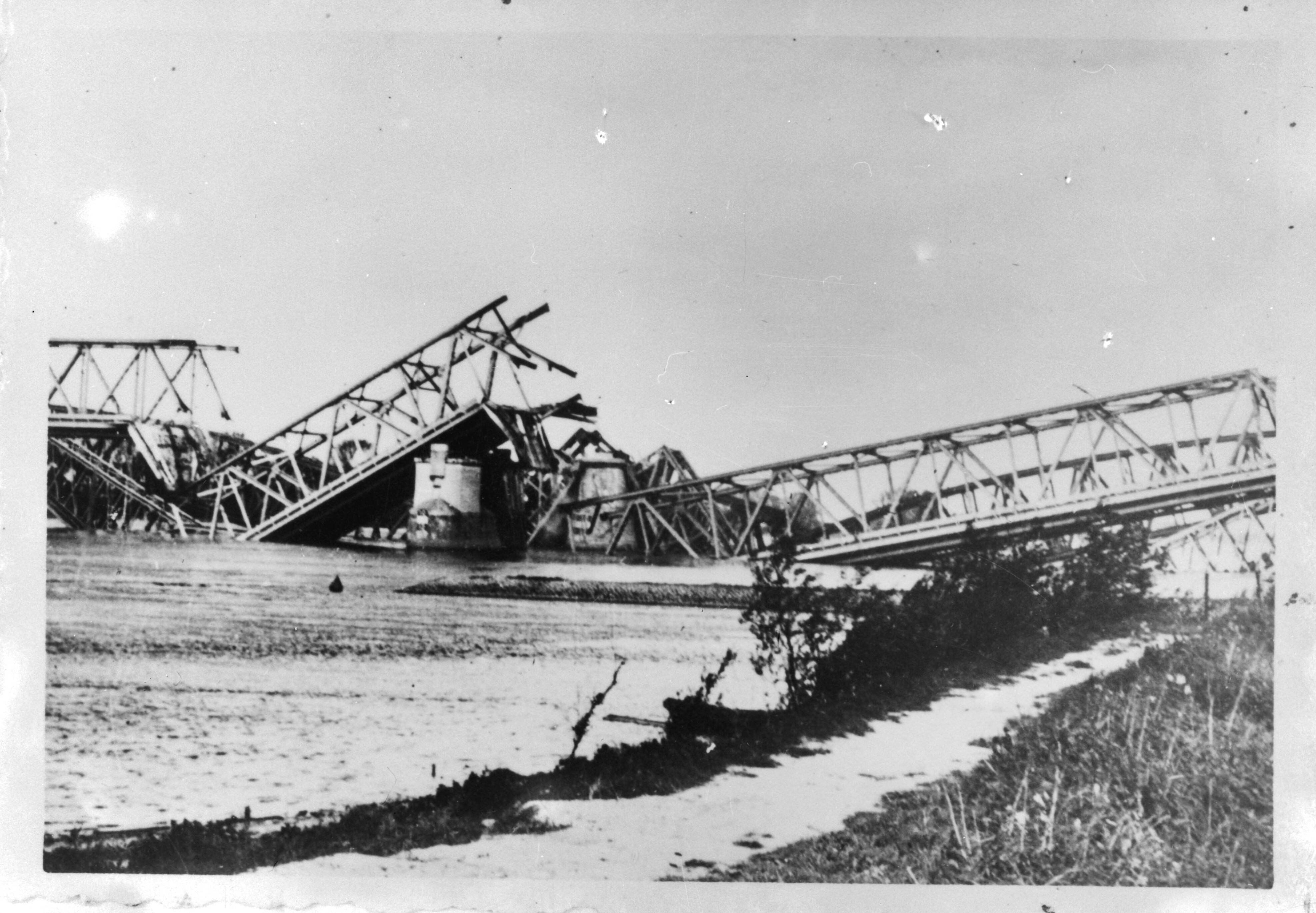 Verwoestingen Meidagen 1940. Verwoeste brug