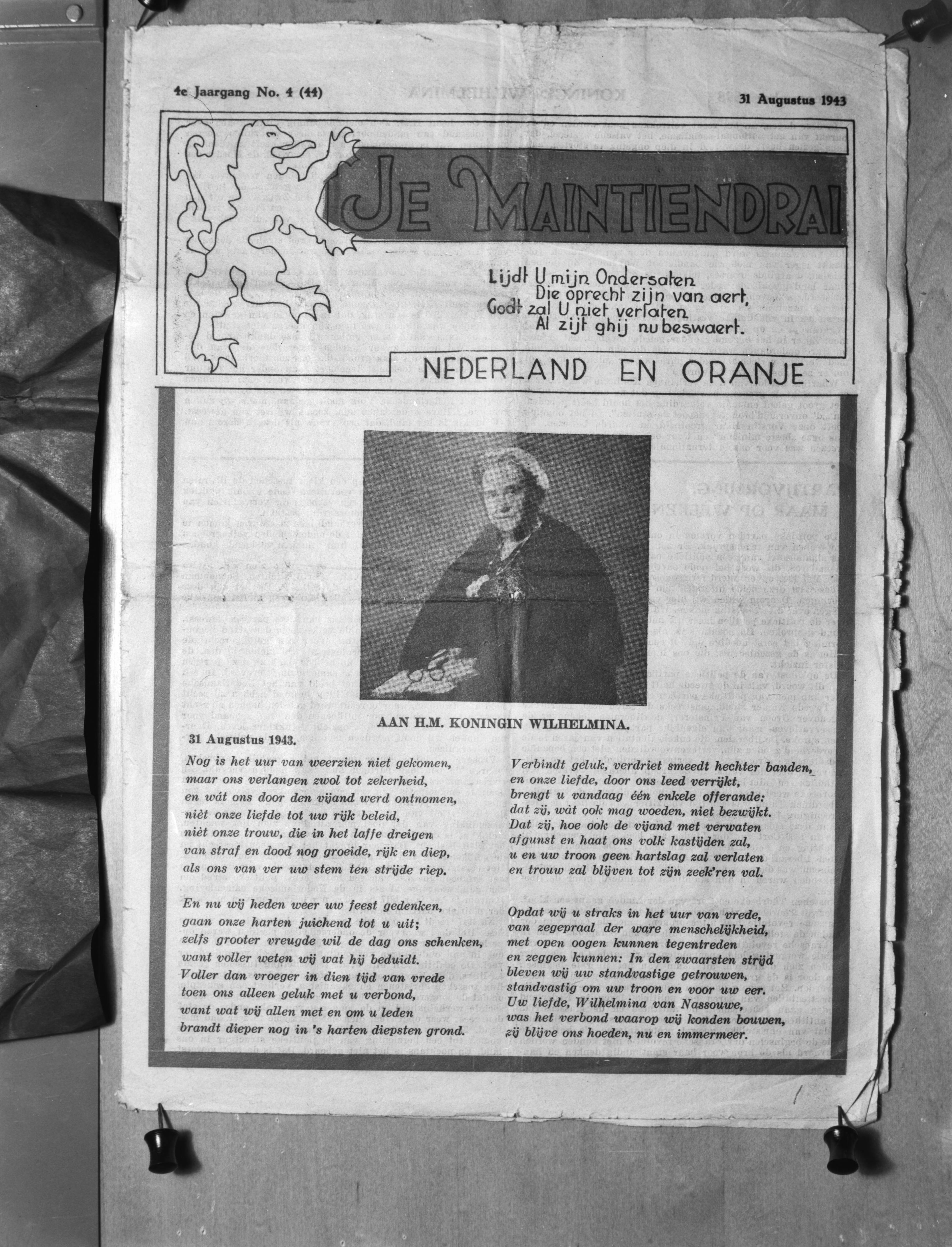 Titelpagina "Je Maintiendrai" (31 augustus 1943, 4e jrg. no. 4)